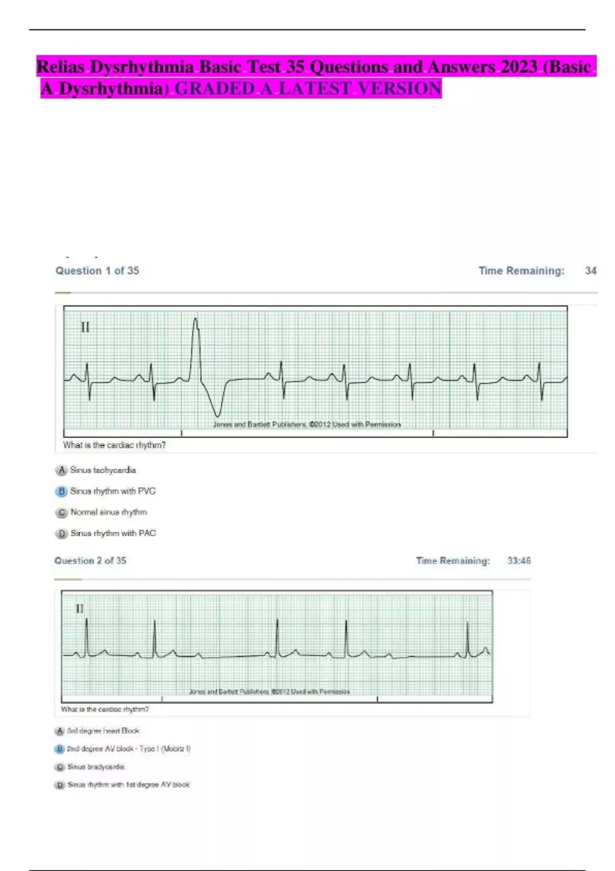 Relias Dysrhythmia Basic Test 35 Questions and Answers 2023 (Basic A Dysrhythmia)
