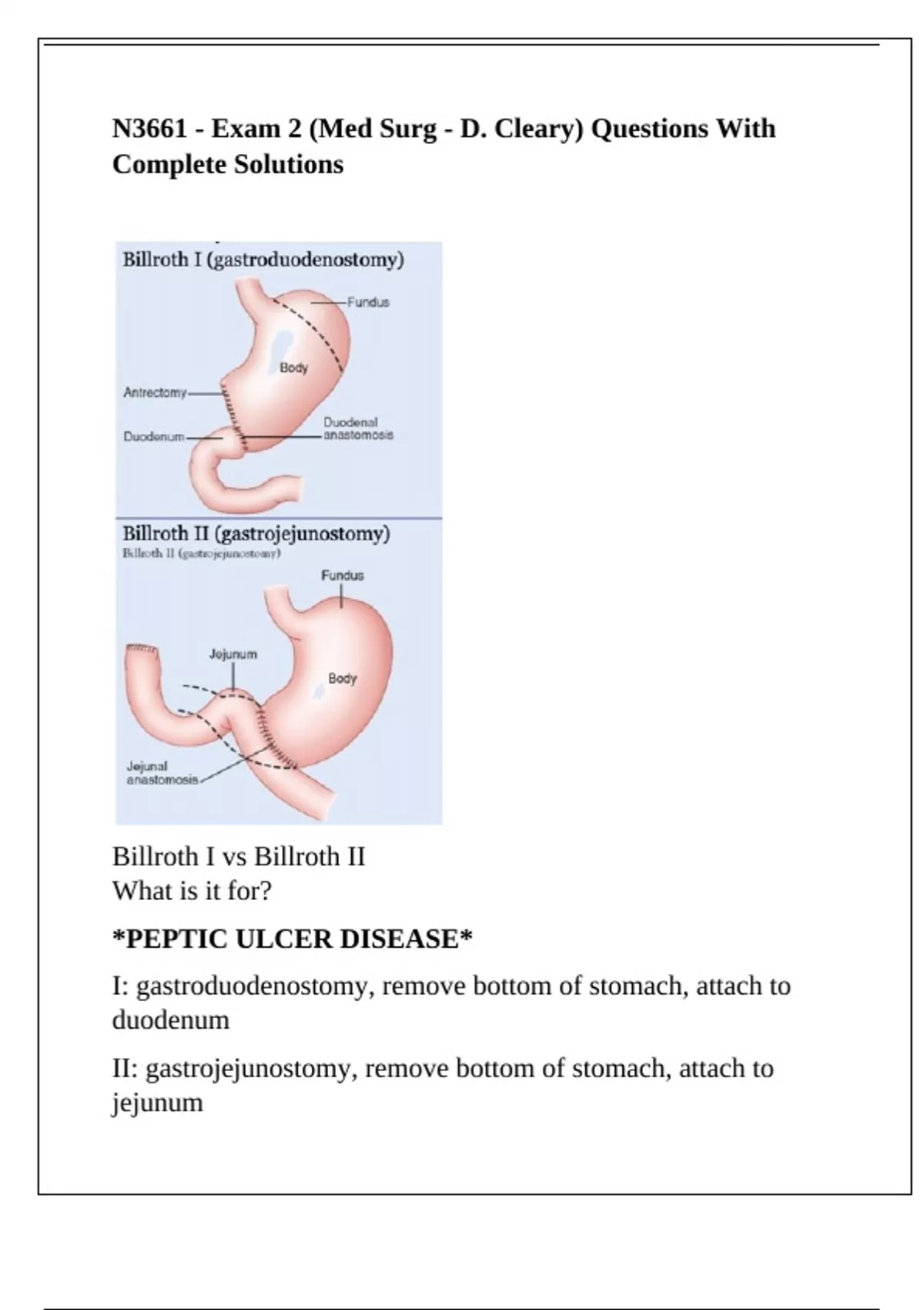 II: gastrojejunostomy, remove bottom of stomach, attach to