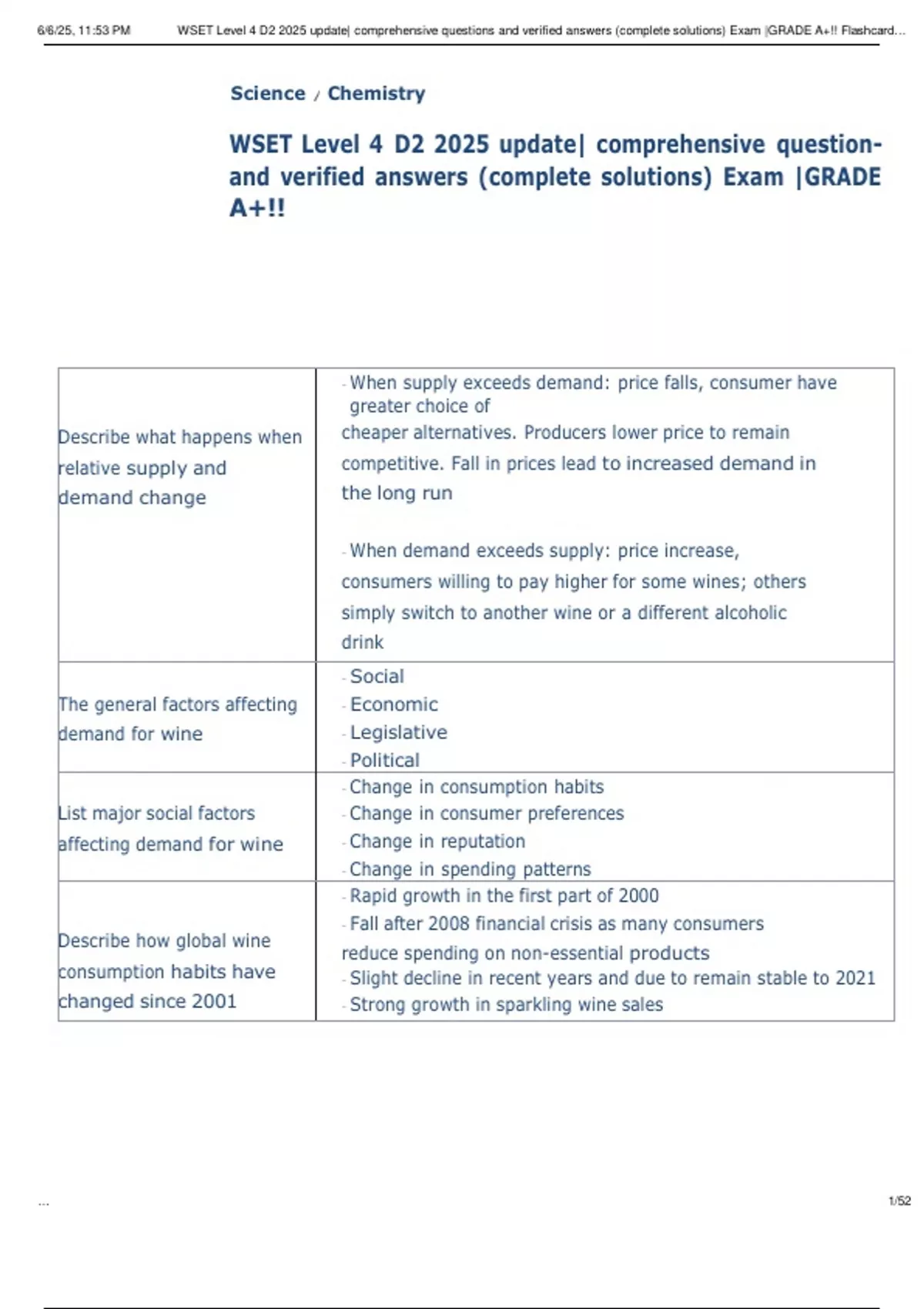 ,6/6/25, 11:53 PM WSET Level 4 D2 2025 update| comprehensive questions and verified answers (complete solutions) Exam |GRADE A+!! Flashcard…
