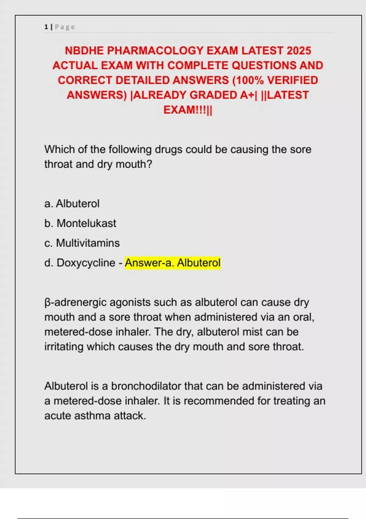 NBDHE PHARMACOLOGY EXAM LATEST 2025