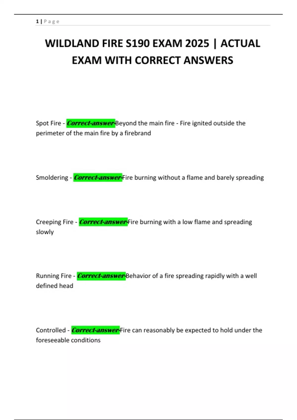 WILDLAND FIRE S190 EXAM 2025 | ACTUAL EXAM WITH CORRECT ANSWERS