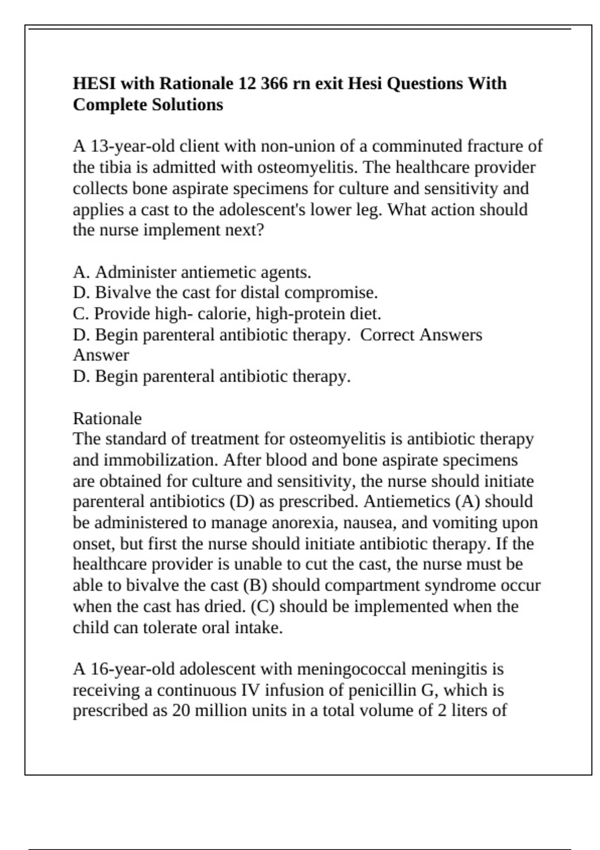 BNS 366 Nightingale College -HESI with Rationale 12 366 rn exit Hesi Questions With Complete Solutions.