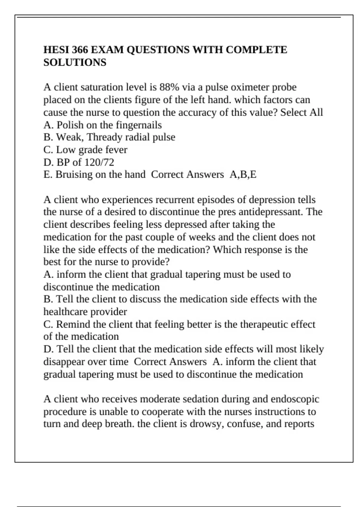 HESI 366 EXAM QUESTIONS WITH COMPLETE