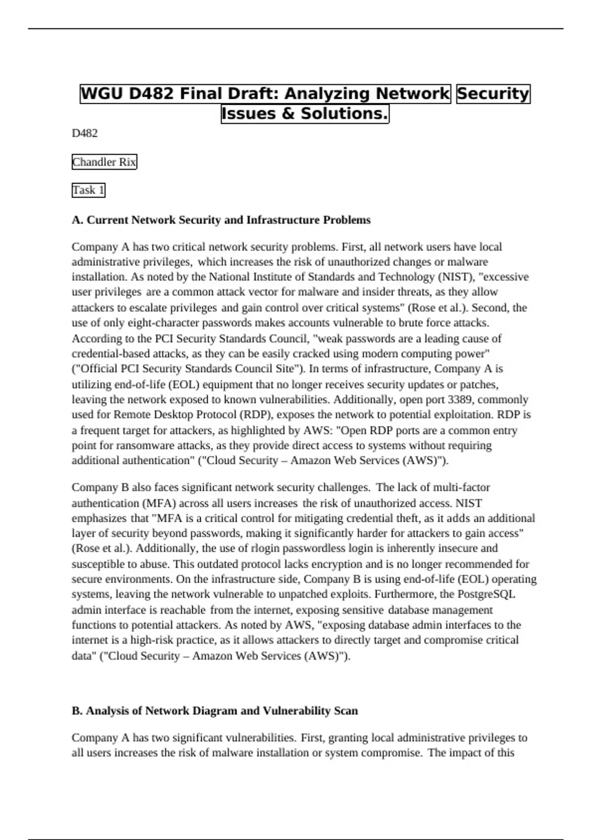 WGU D482 Final Draft: Analyzing Network Security Issues & Solutions.