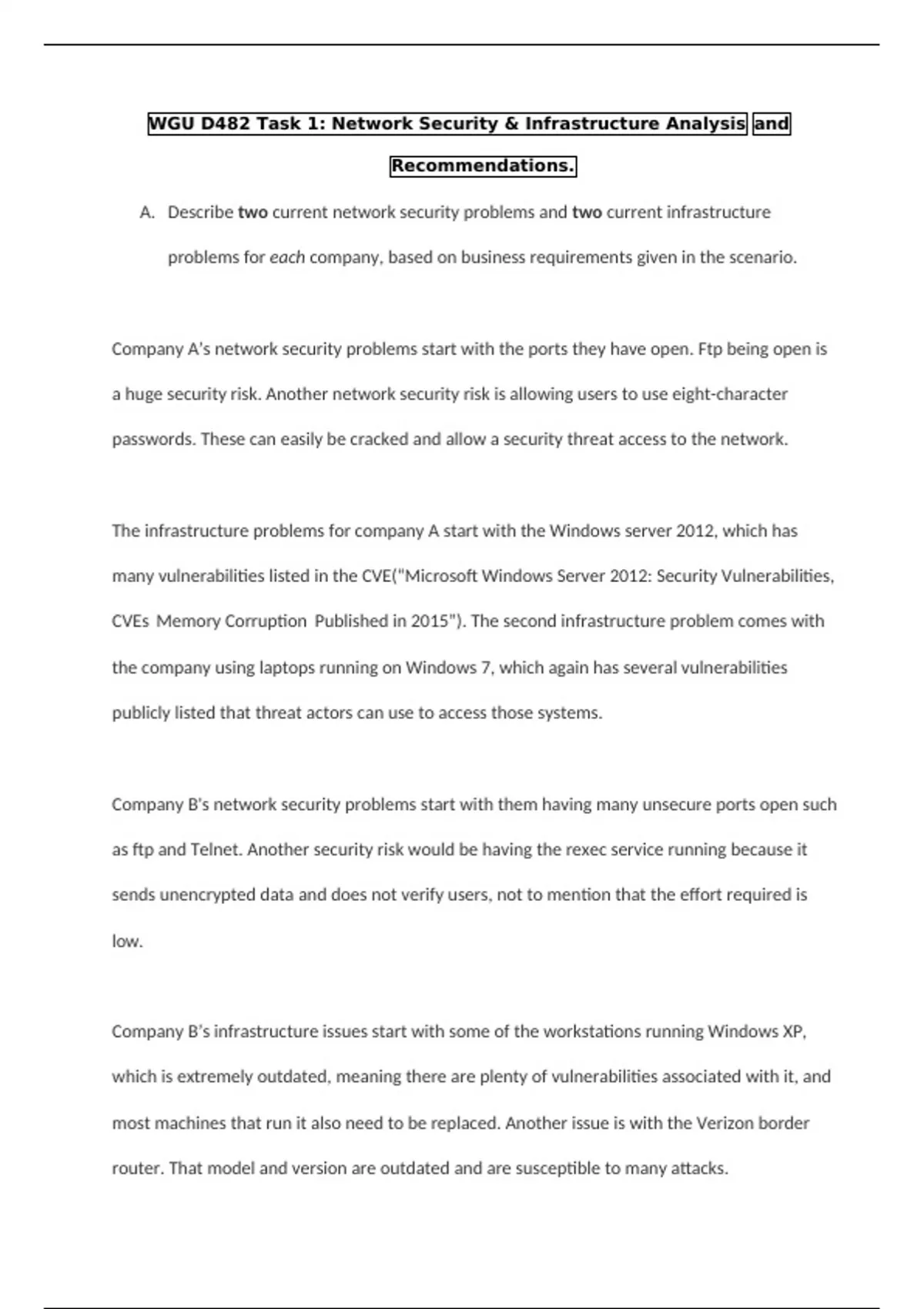 WGU D482 Task 1: Network Security & Infrastructure Analysis and