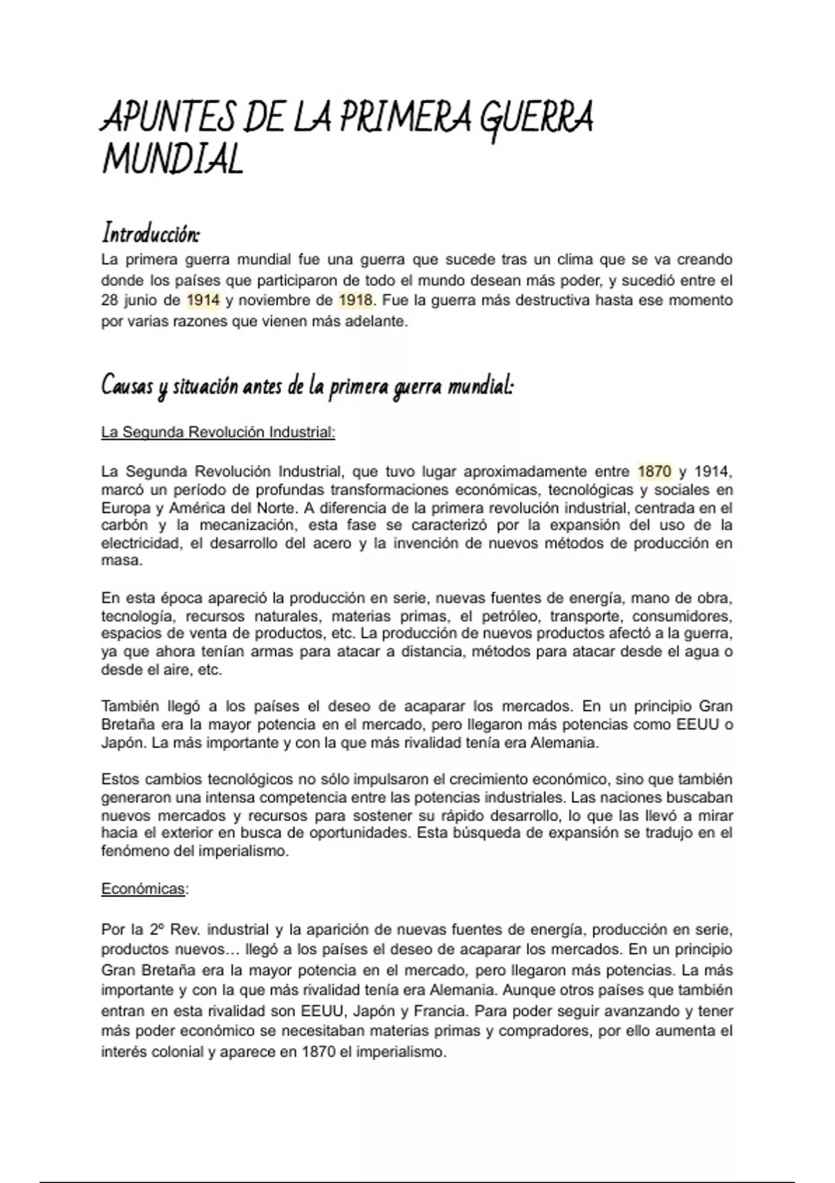 APUNTES DE LA PRIMERA GUERRA