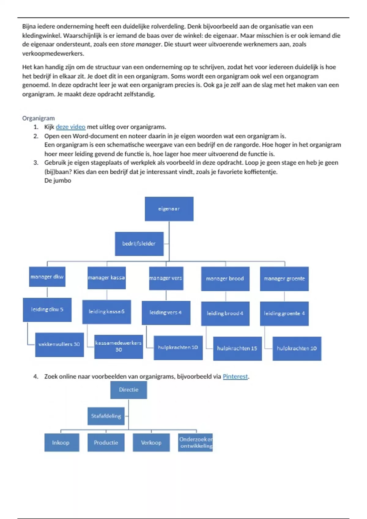 genoemd. In deze opdracht leer je wat een organigram precies is. Ook ga je zelf aan de slag met het maken van een