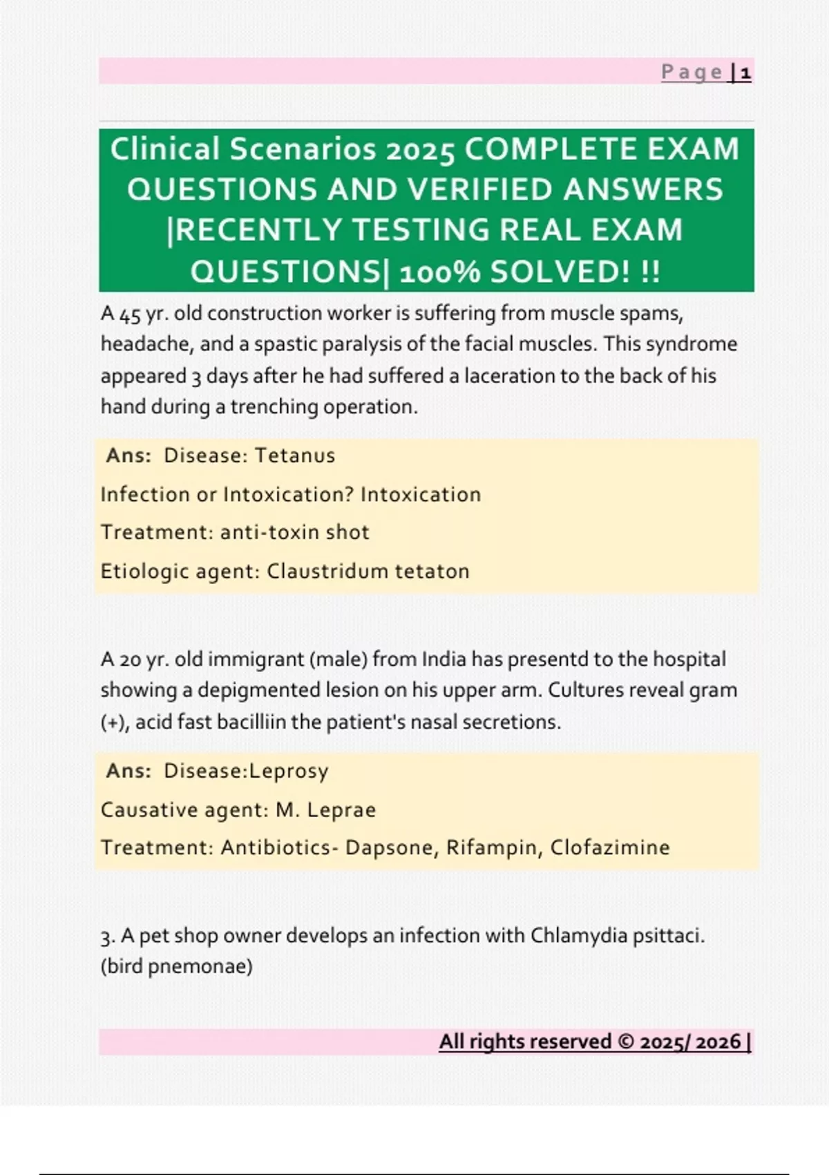 Clinical Scenarios 2025 COMPLETE EXAM