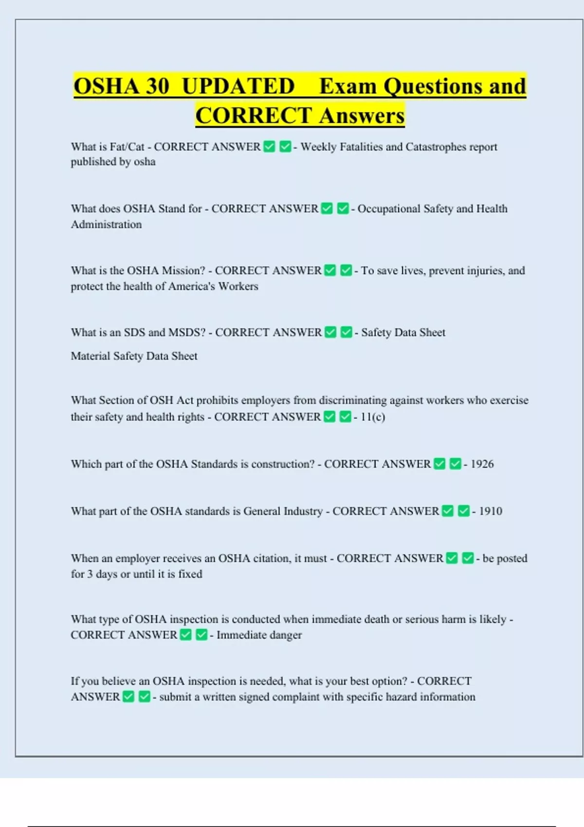 What does OSHA Stand for - CORRECT ANSWER - Occupational Safety and Health