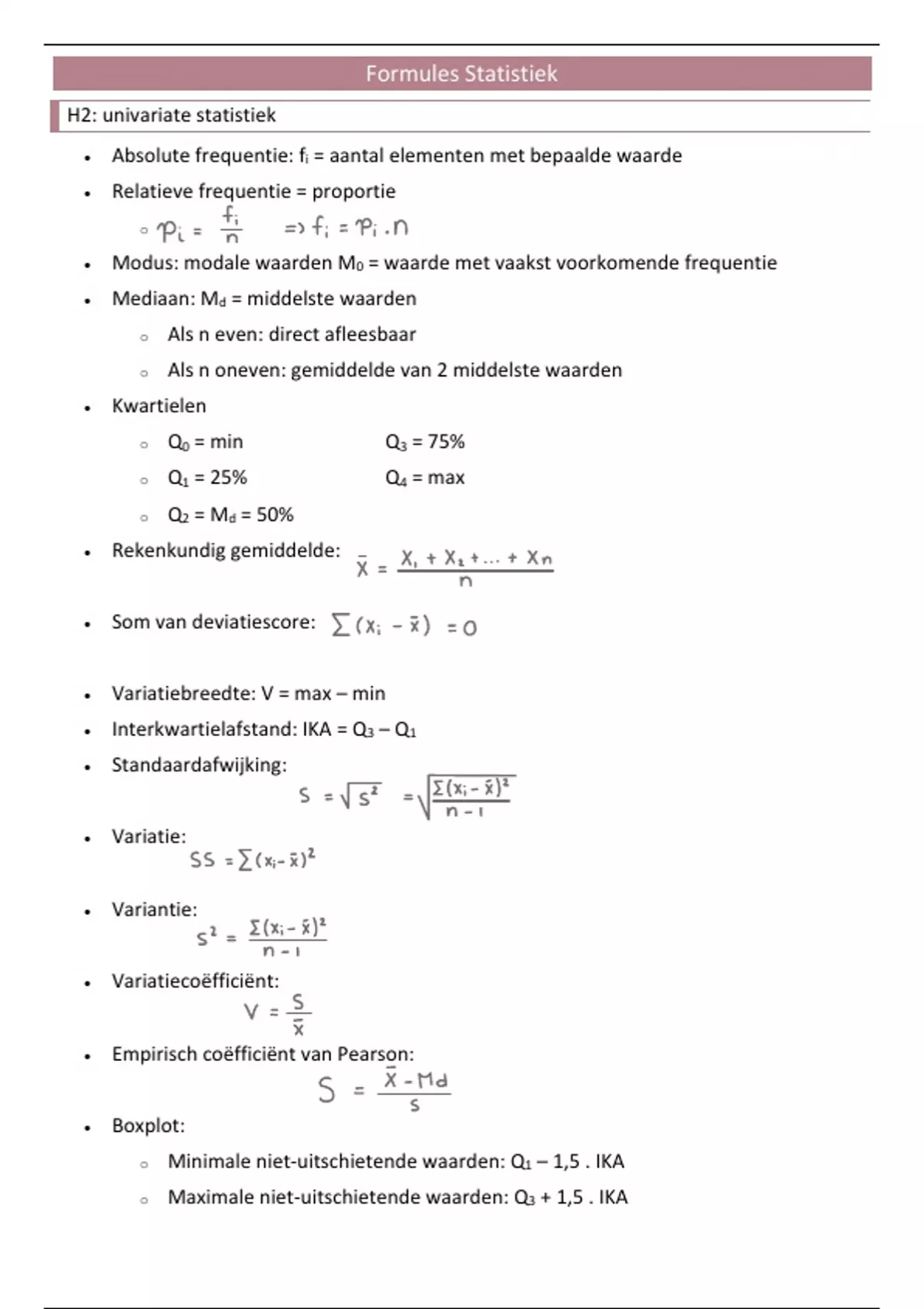 Formules Statistiek