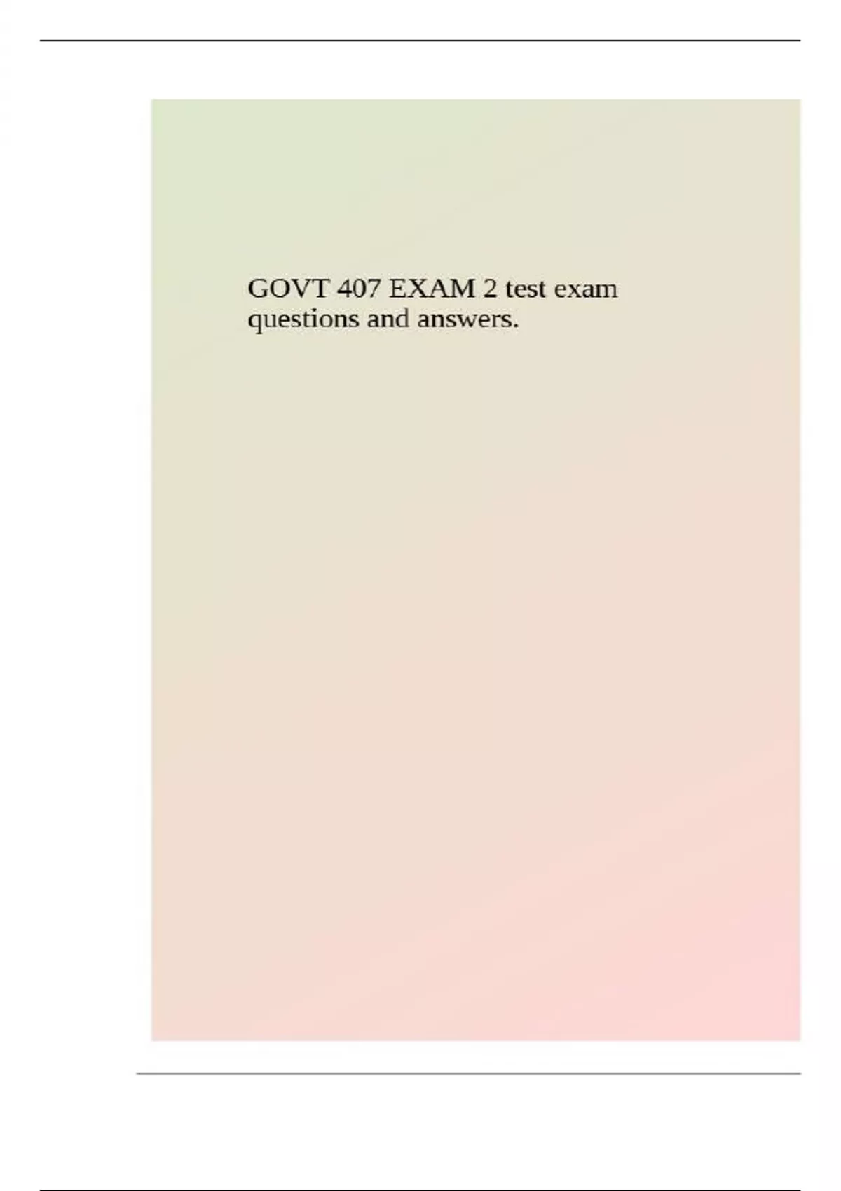 GOVT 407 EXAM 2 test exam questions and answers NEW COMPLETE DOCUMENT