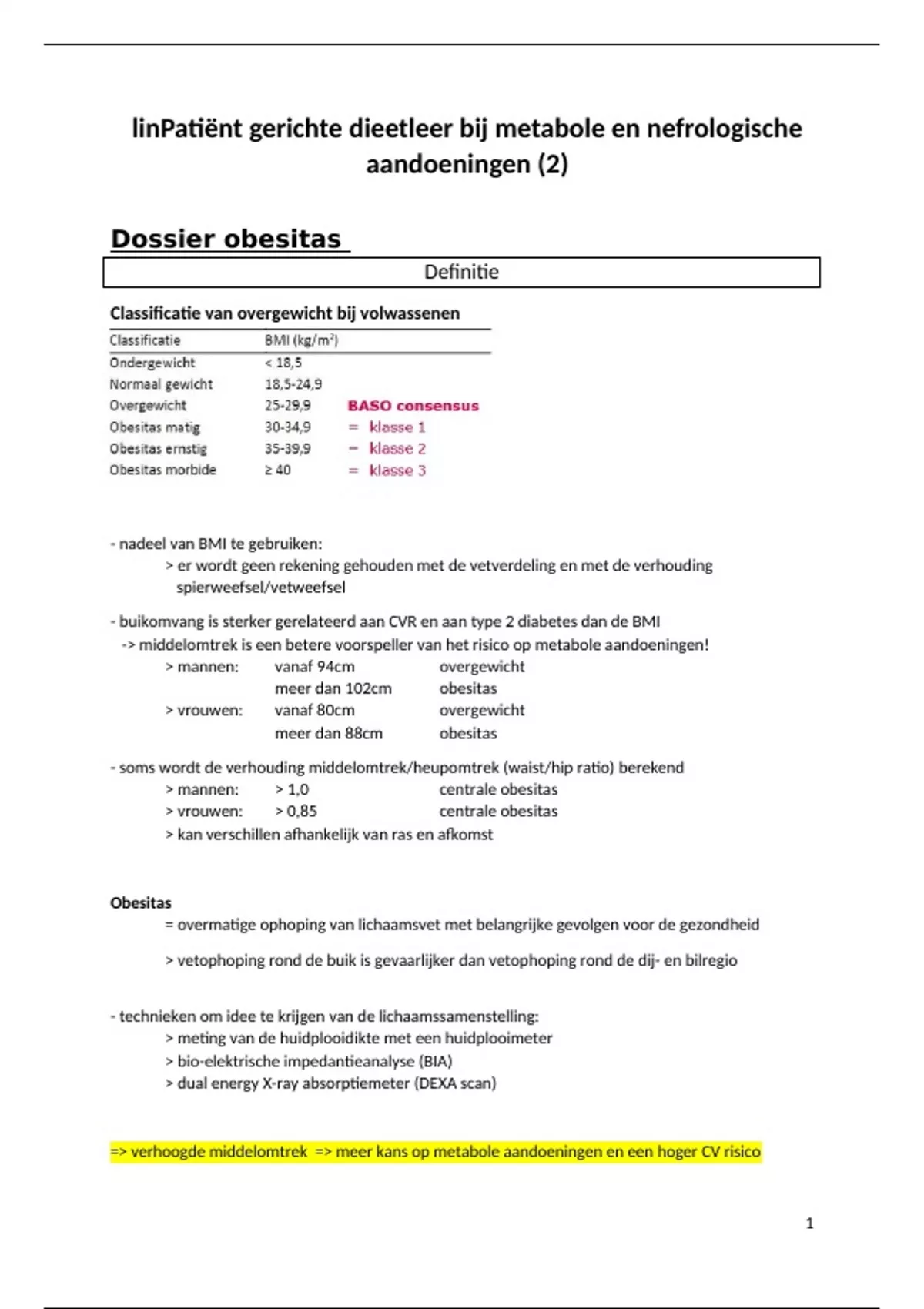 Deze samenvatting bevat de leerstof uit het deel 'pathologie en farmacologie' van het vak 'Patiëntgerichte dieetleer bij metabole en nefrologische aandoeningen'.