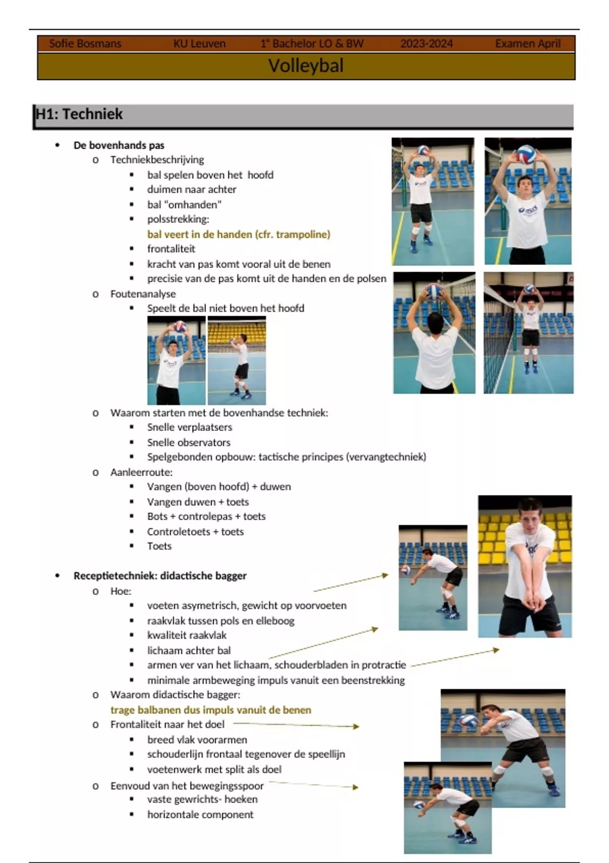 Samenvatting - volleybal - Bewegingsleer in de interactieve bewegingsactiviteiten I