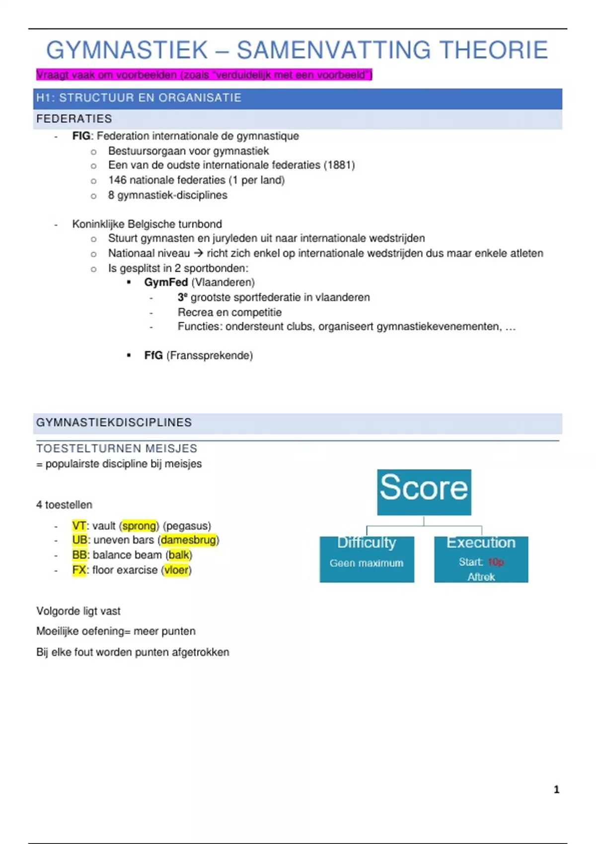 GYMNASTIEK – SAMENVATTING THEORIE