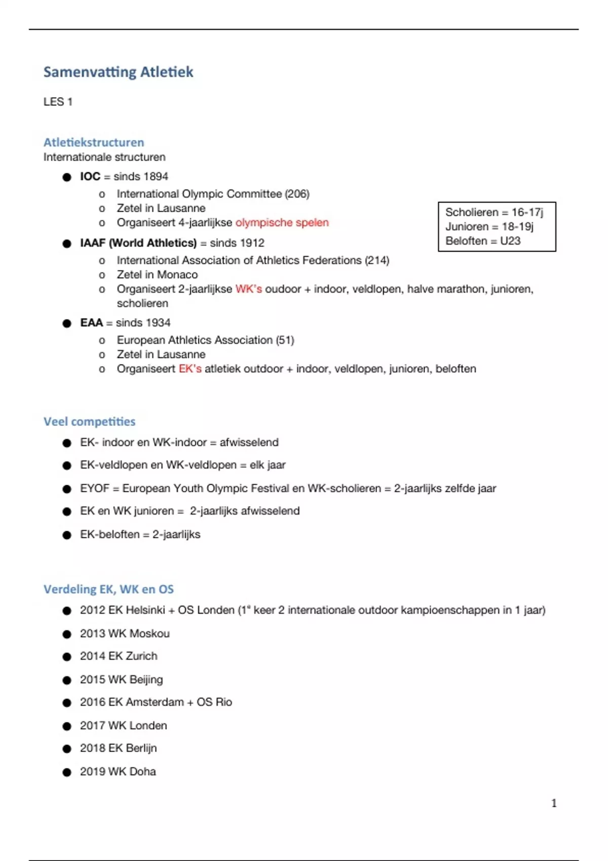 ● IAAF (World Athletics) = sinds 1912 Beloften = U23
