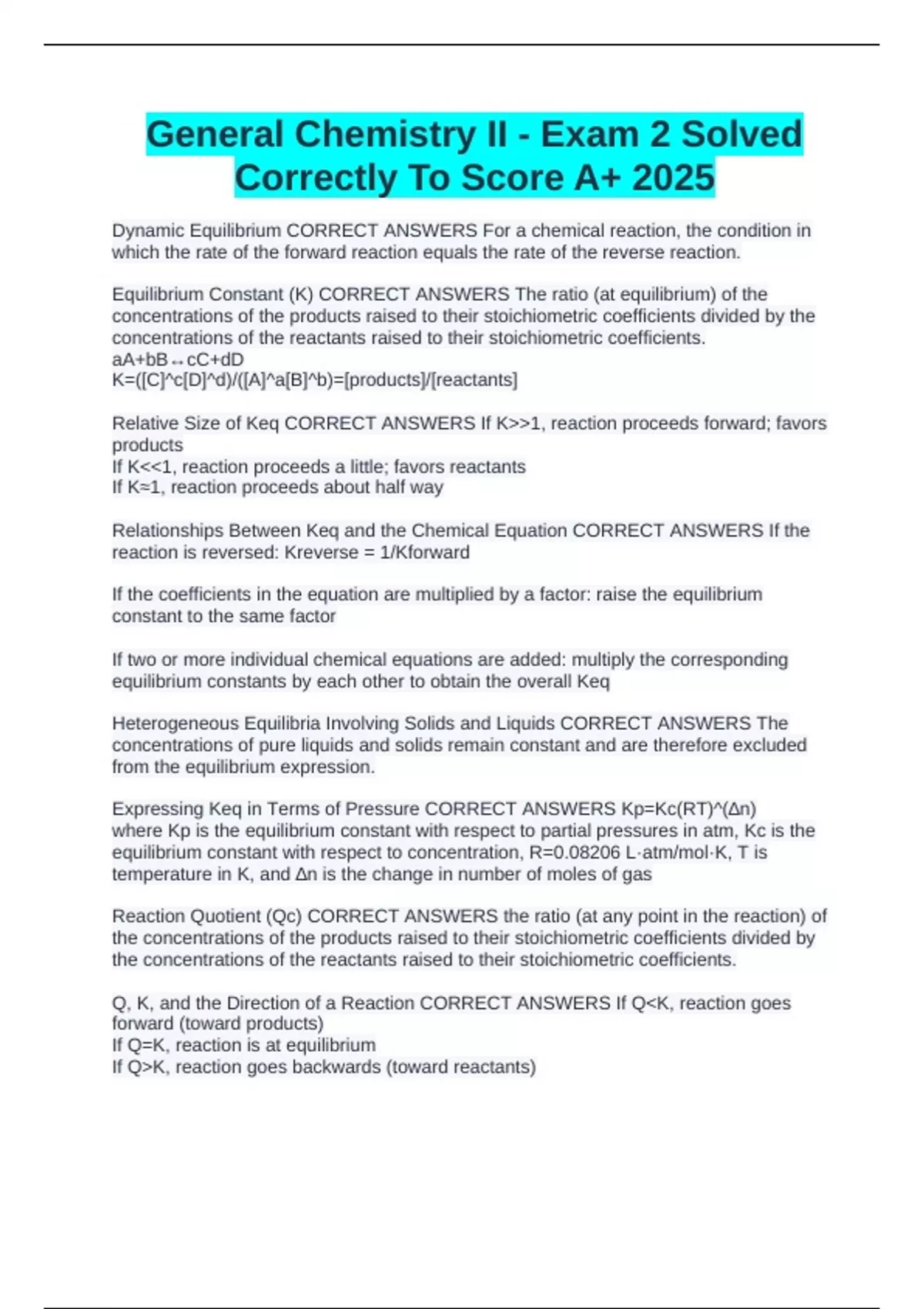 Dynamic Equilibrium CORRECT ANSWERS For a chemical reaction, the condition in
