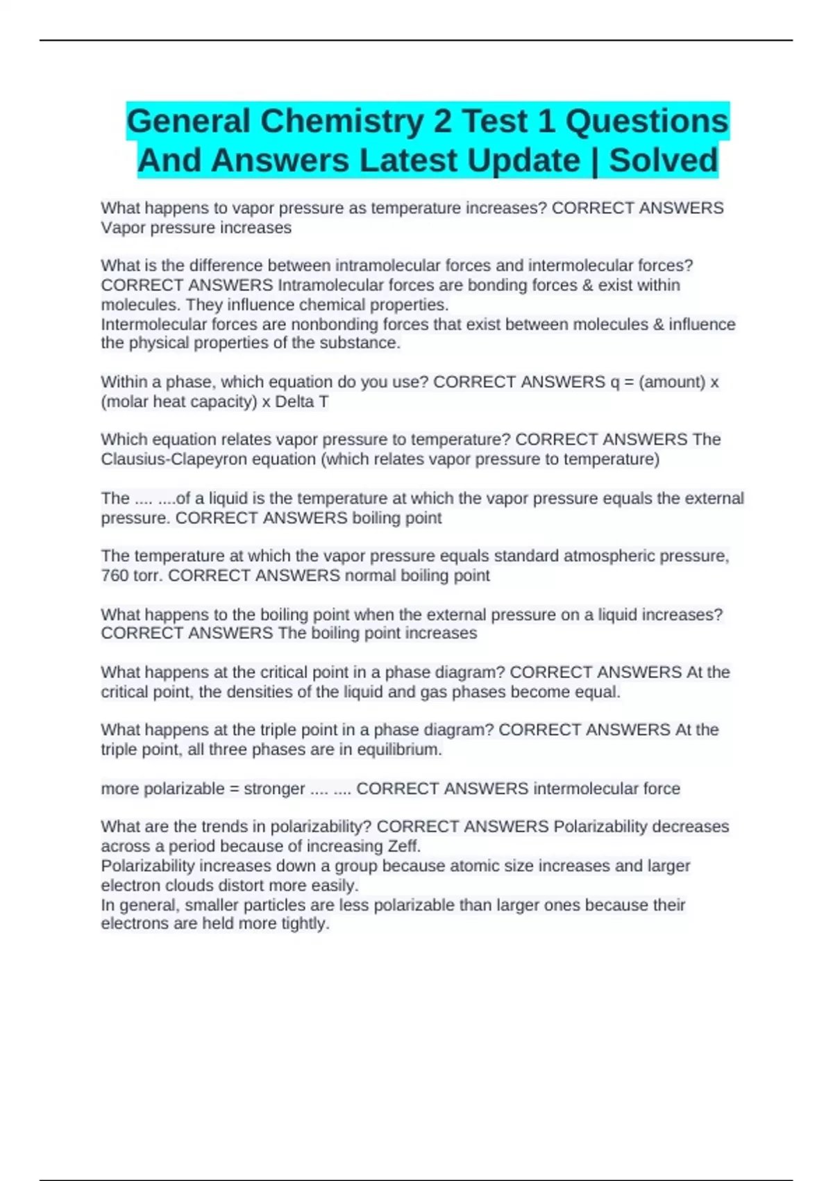 CORRECT ANSWERS The boiling point increases