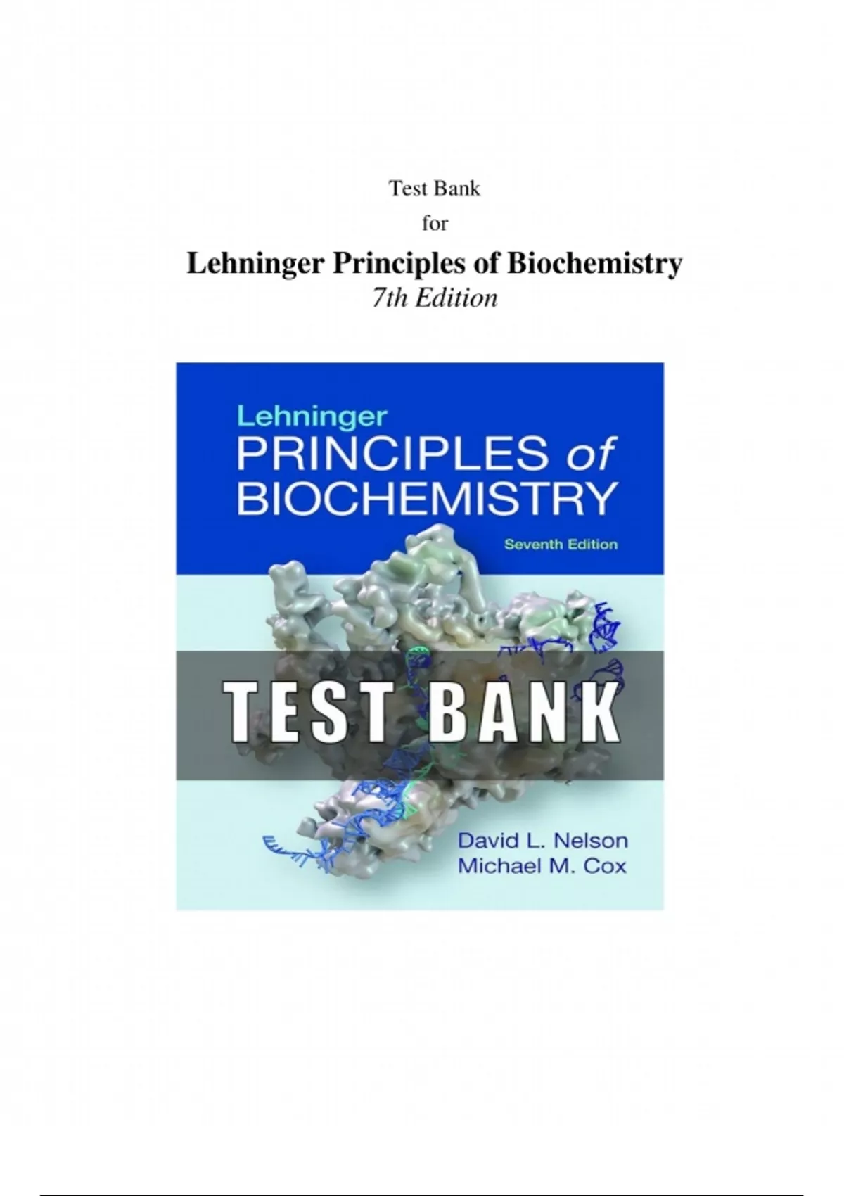 Study smarter with this comprehensive Test Bank for Lehninger Principles of Biochemistry, 7th Edition by David L. Nelson. Includes hundreds of multiple-choice, true/false, and short-answer questions with correct answers. Perfect for college biochemistry courses, quizzes, exams, and MCAT prep.