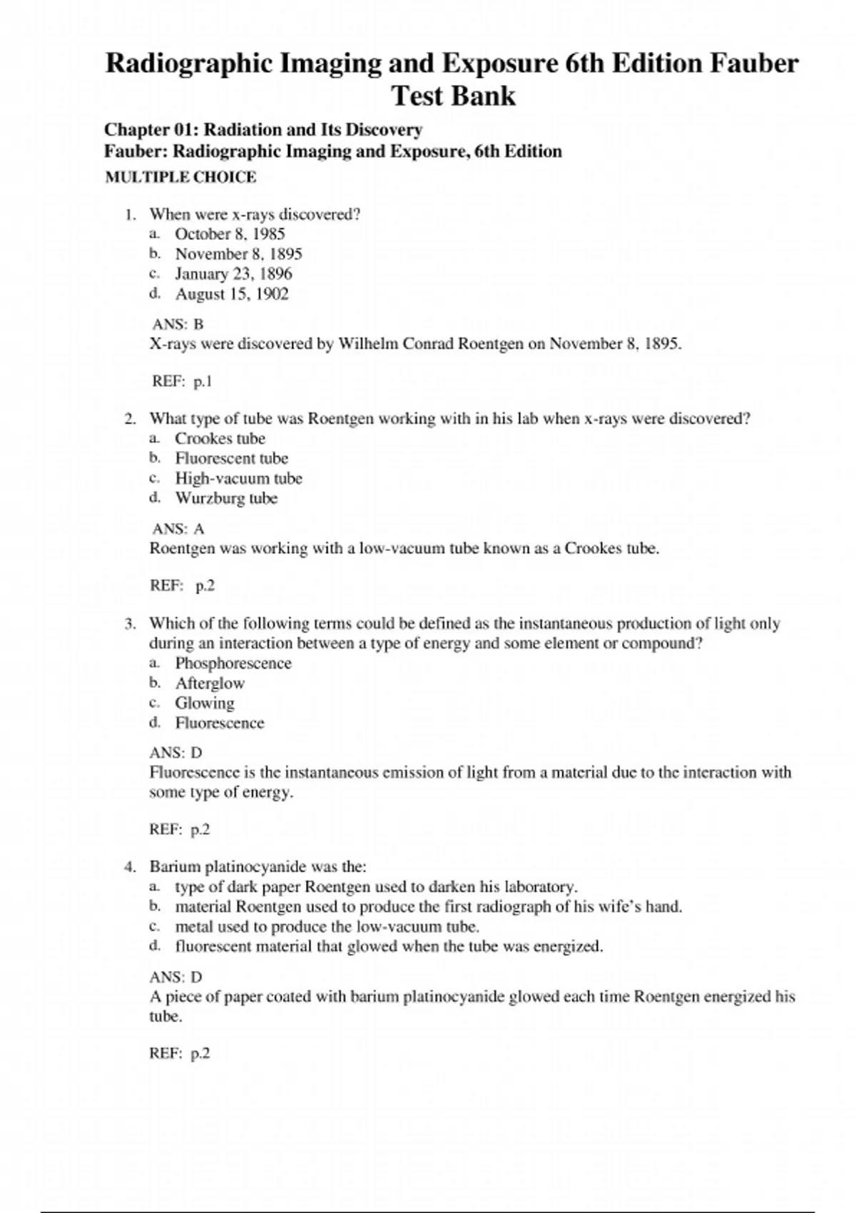 Radiographic Imaging and Exposure 6th Edition Test Bank | Terri L. Fauber | Exam Questions & Answers