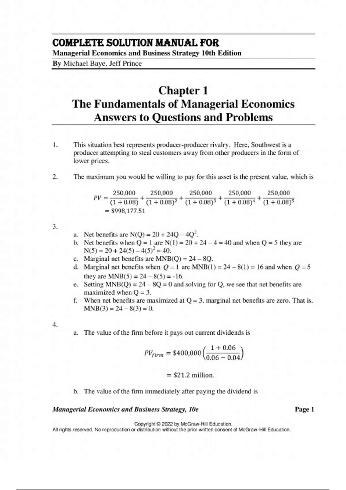 Managerial Economics & Business Strategy 10th Edition Solutions Manual | Michael Baye, Jeff Prince | Step-by-Step Answers