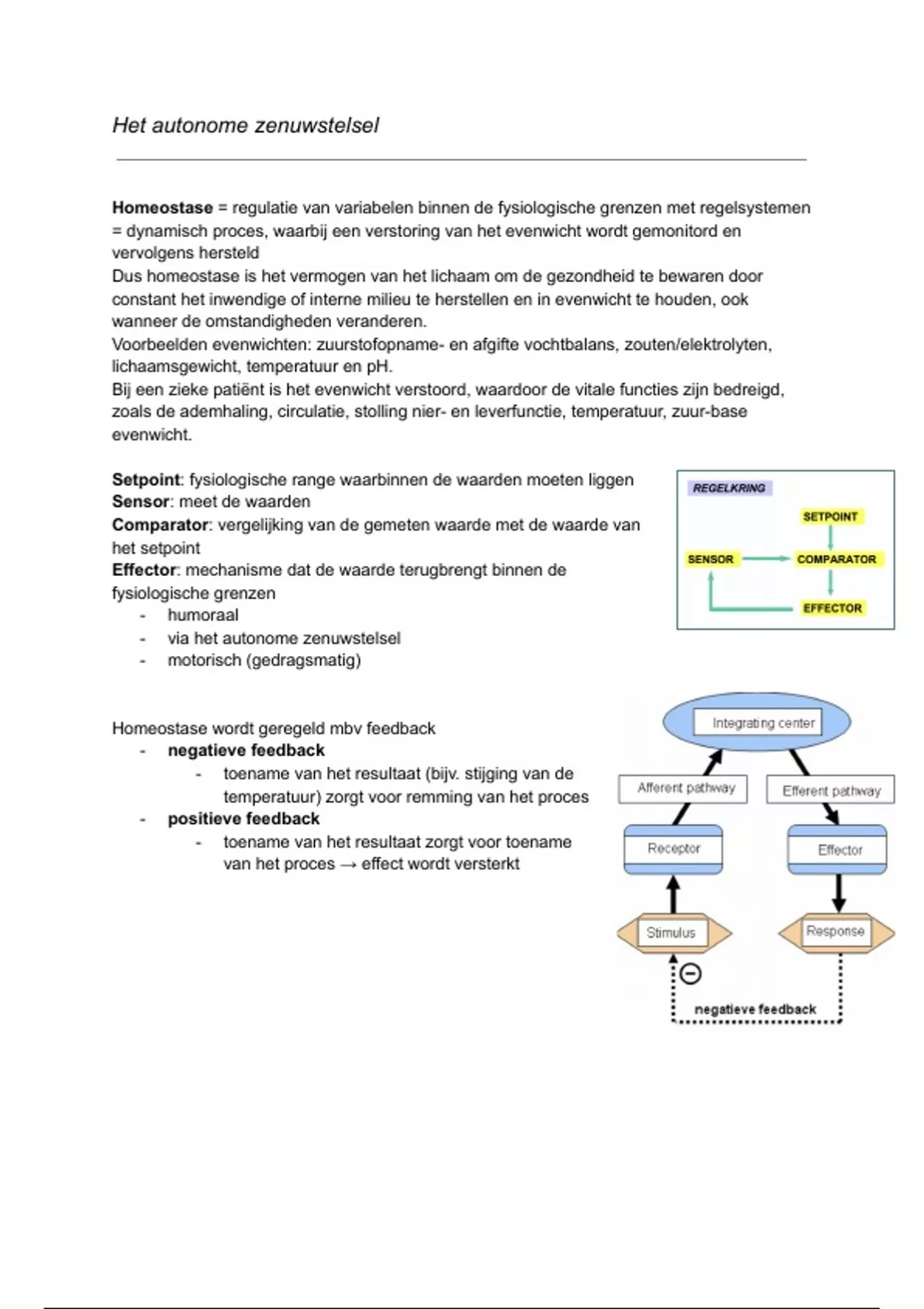 - vegetatieve (onwillekeurige) regulatie → belangrijk voor dit blok