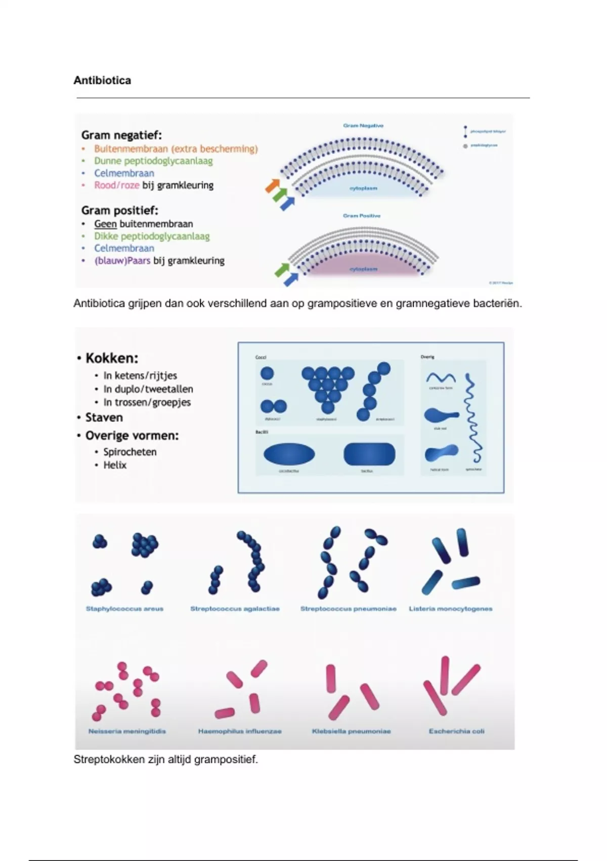 Duidelijk en compleet overzicht van alle informatie die je moet kennen over antibiotica voor het vak infectie & inflammatie van jaar 2 geneeskunde aan de VU.