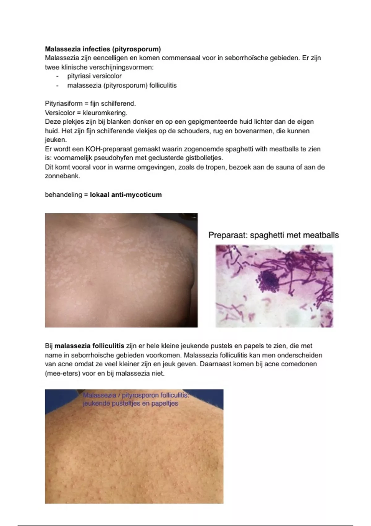 name in seborrhoische gebieden voorkomen. Malassezia folliculitis kan men onderscheiden