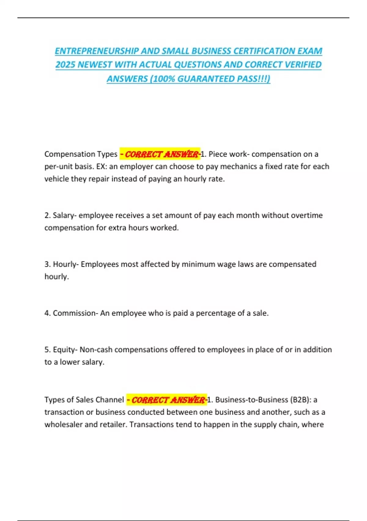 ENTREPRENEURSHIP AND SMALL BUSINESS CERTIFICATION EXAM 2025 NEWEST WITH ACTUAL QUESTIONS AND CORRECT VERIFIED ANSWERS (100% GUARANTEED PASS!!!)