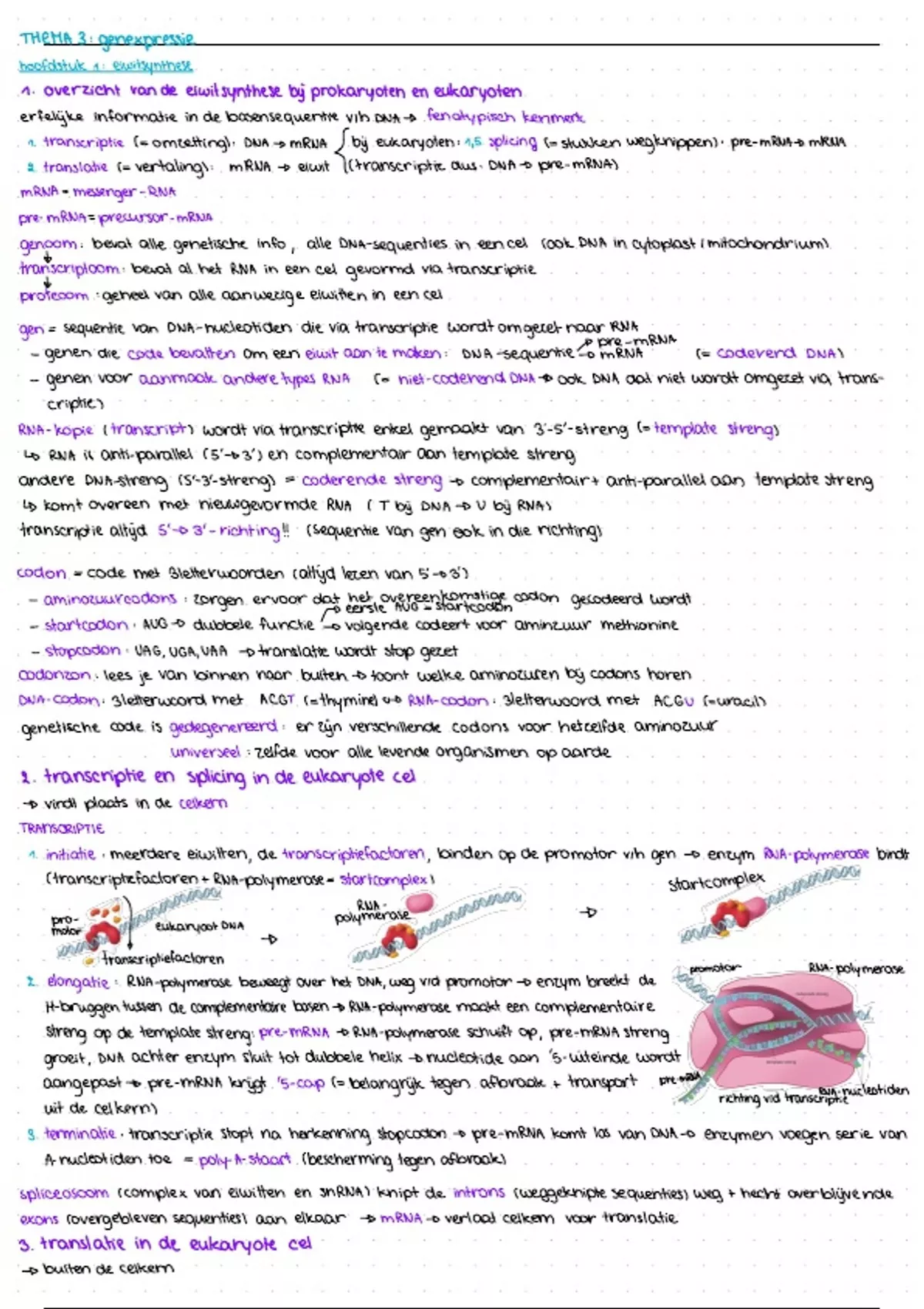 1 transcriptie I omzetting : DNA-amRNA bij eukaryoten :