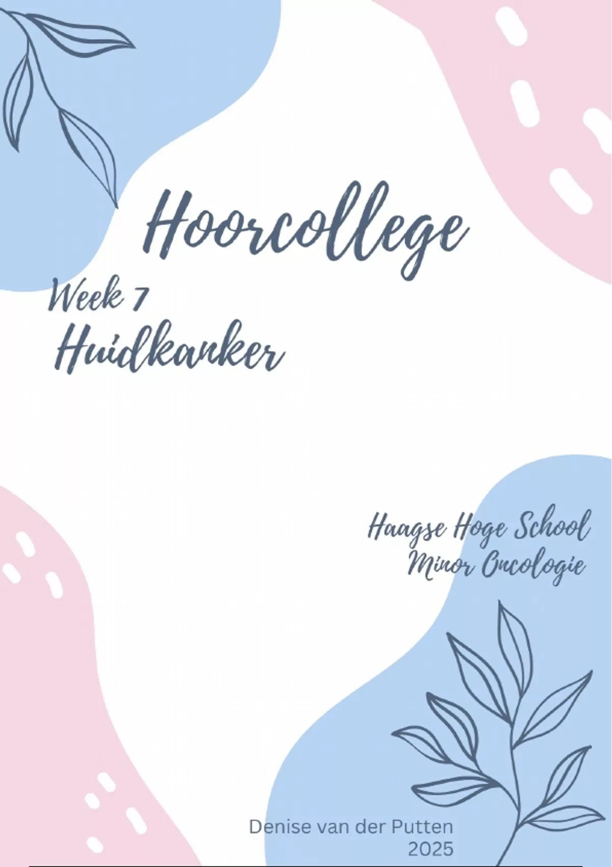 Epidermis = opperhuid; geen bloedvaten, ontstaan meeste huidkankers, bevat keratinocyten, melanocyten,