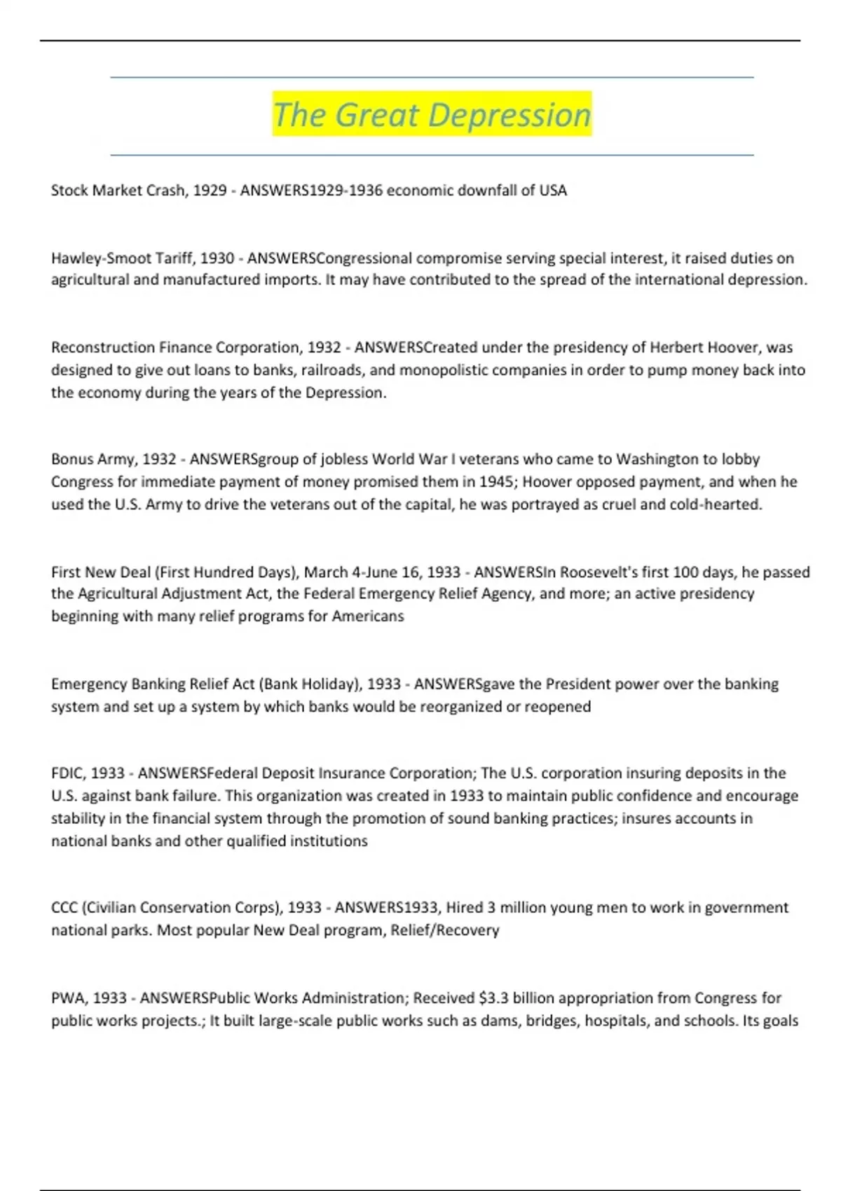 FDIC, 1933 - ANSWERSFederal Deposit Insurance Corporation; The U.S. corporation insuring deposits in the