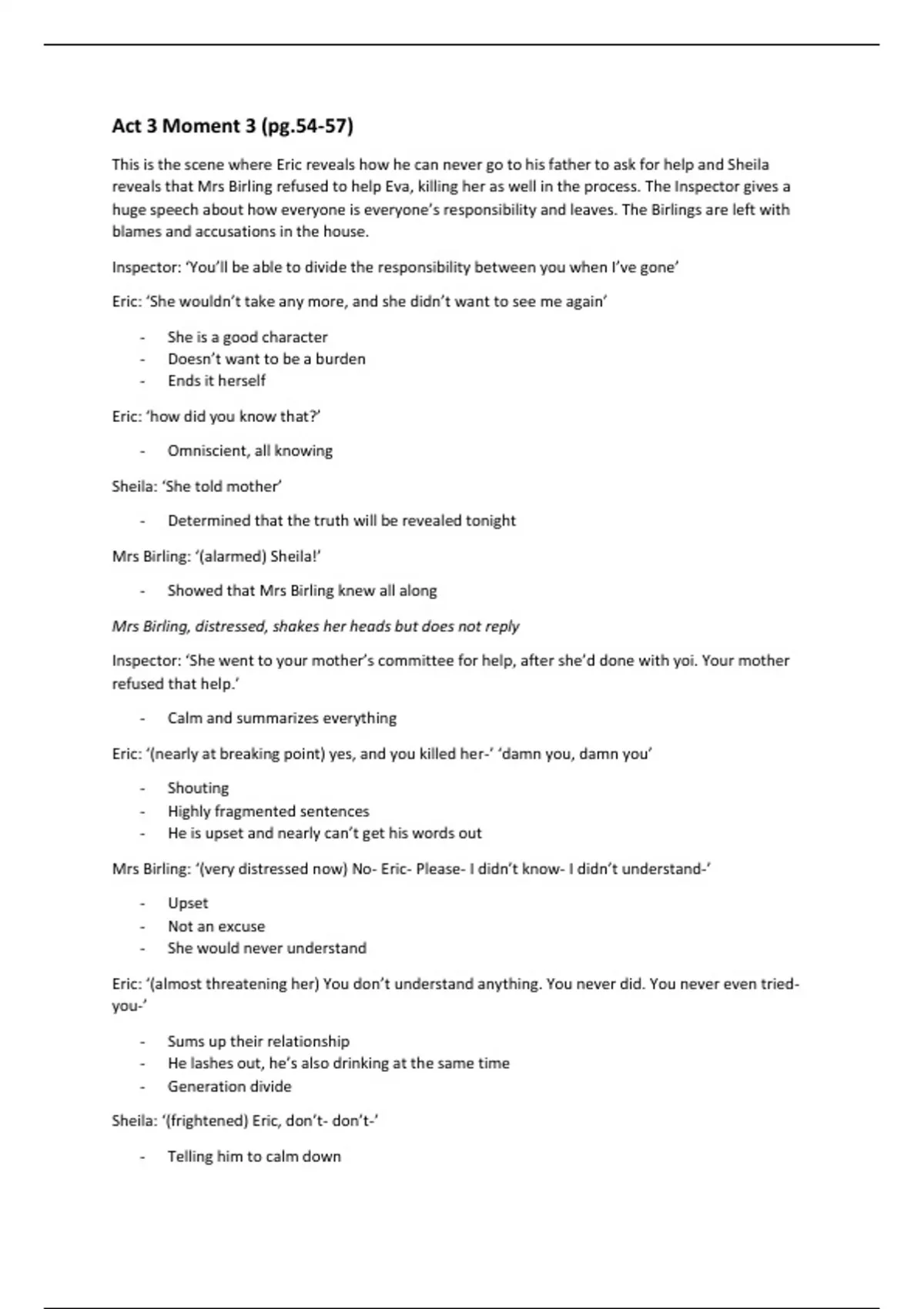 reveals that Mrs Birling refused to help Eva, killing her as well in the process. The Inspector gives a