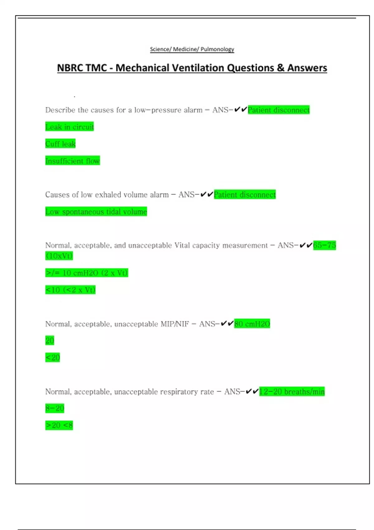 NBRC TMC - Mechanical Ventilation Questions & Answers