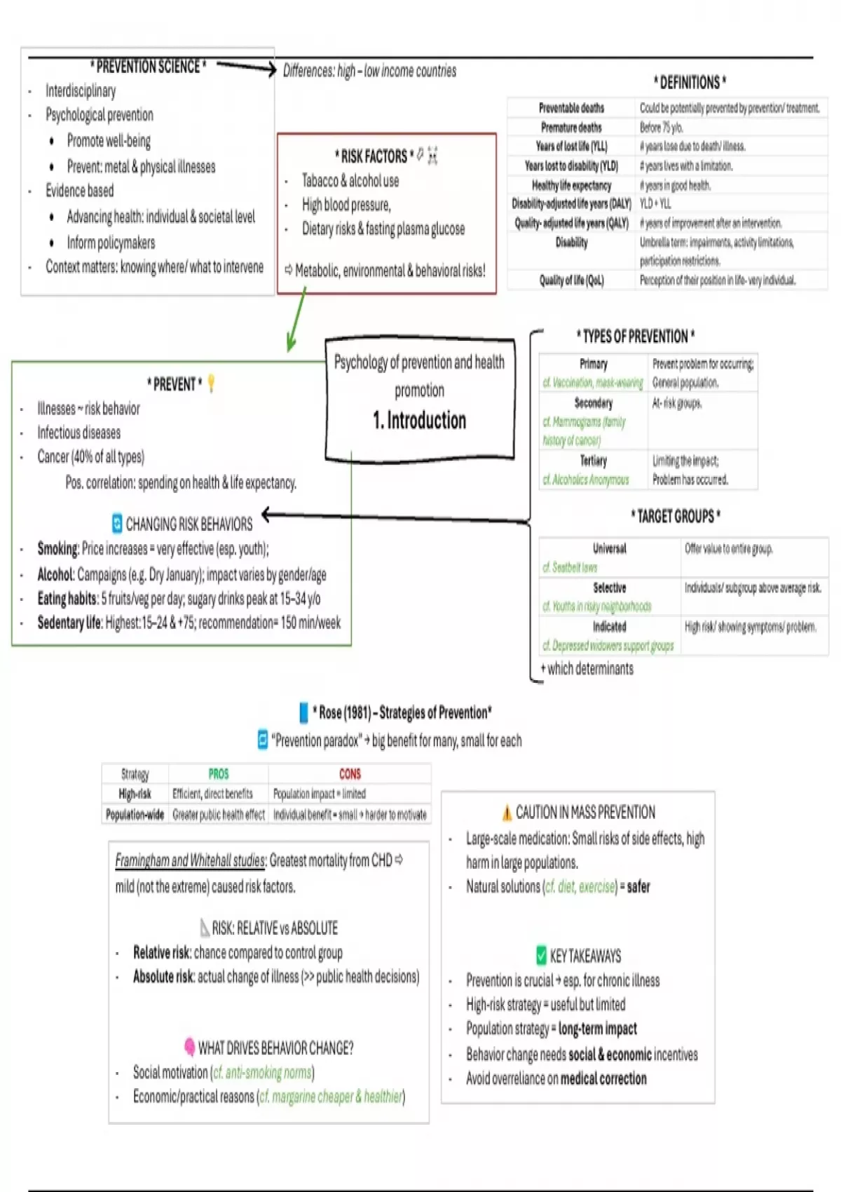Are you looking for a complete, yet concise summary of Psychology of Prevention and Health Promotion? Then you've come to the right place! This summary brings together all mind maps from the OPO Psychology of Prevention and Health Promotion ('24-'25) lectures. Here, I incorporated the essence of each lesson in the form of a clear schedule or mind map. During the semester, I carefully summarized each lecture (see also my other summaries). During the block period, I really learn from this: I review all the lessons again and rework my summaries to one page (recto verso) per lecture. So you can be sure that the information has been thoroughly processed and was not “collected” just like that. Perhaps also important for those who, like me, sometimes struggle with all that English-language material... Personally, I also have trouble with that on a regular basis. Because the exam takes place in English, I choose to also summarize in English — but with simplified vocabulary and sentence structures that I understand myself. Are you short on time but still want to see it all? Or do you want to use this summary as a repetition to gain more insight into the lectures? Then I am convinced that this document can help you. I wish you the best of luck with the exam!