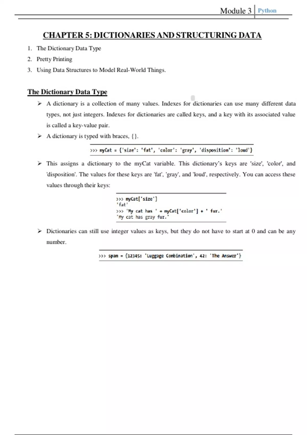 CHAPTER 5: DICTIONARIES AND STRUCTURING DATA