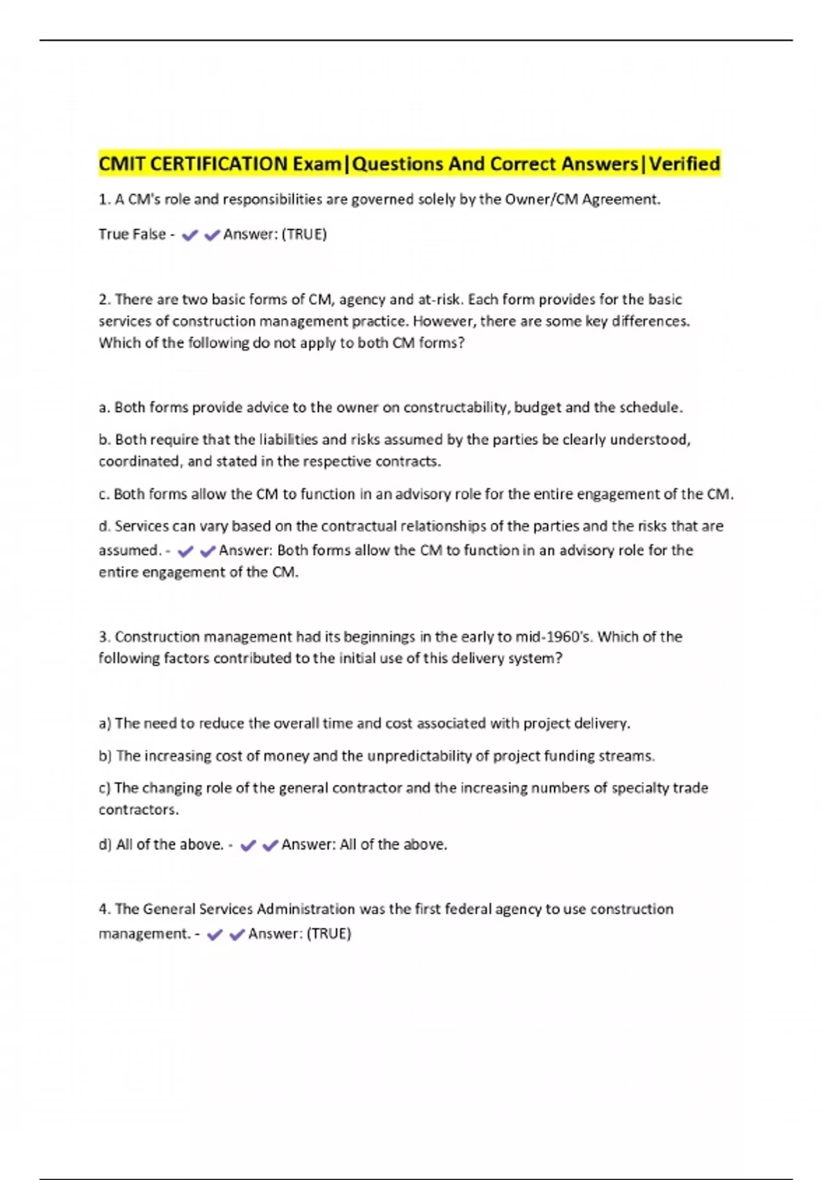 CMIT CERTIFICATION Exam|Questions And Correct Answers|Verified