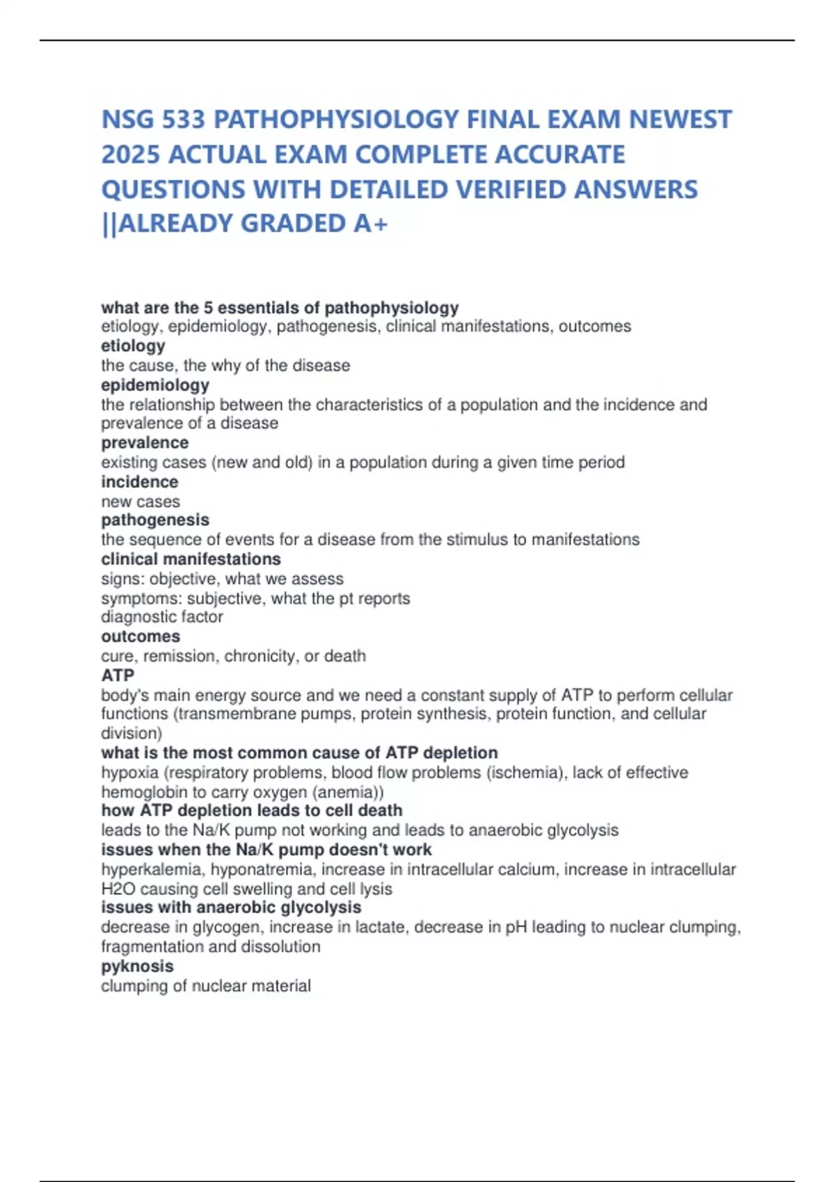 NSG 533 PATHOPHYSIOLOGY FINAL EXAM NEWEST