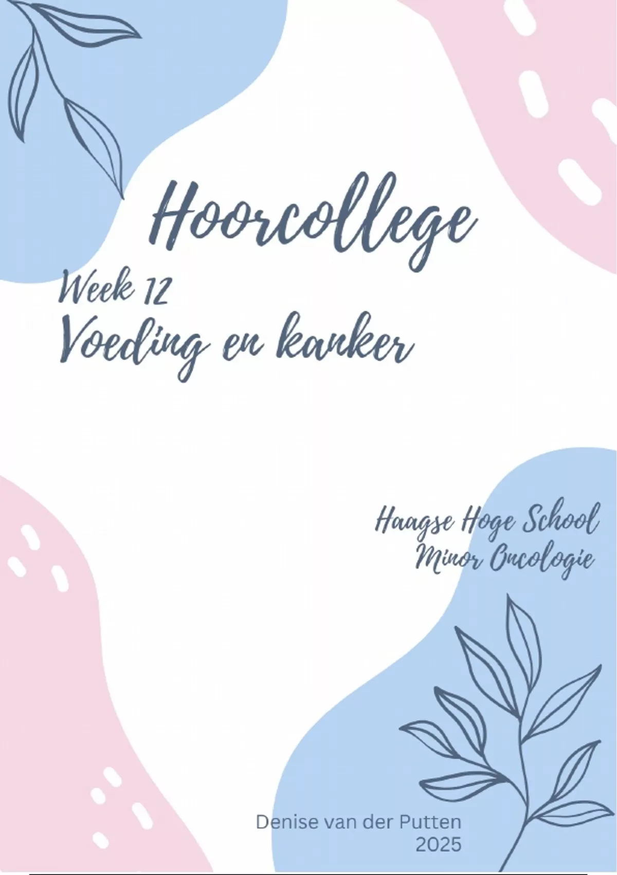 Hoorcollege aantekeningen week 12 - Voeding en kanker