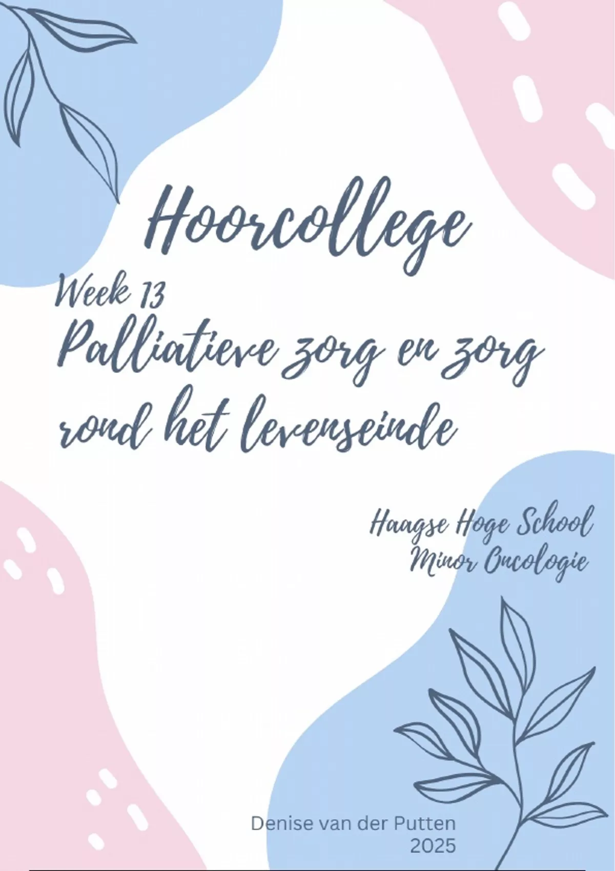 Hoorcollege aantekeningen week 13 - Palliatieve zorg en zorg rond het levenseinde