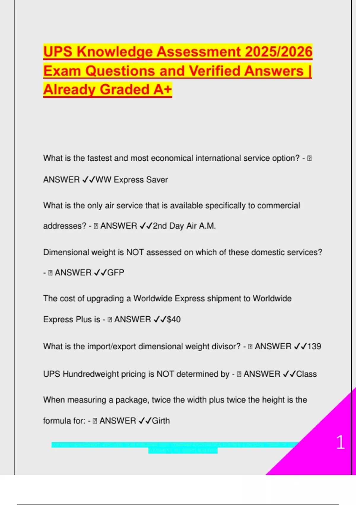 ANSWER ✔✔WW Express Saver