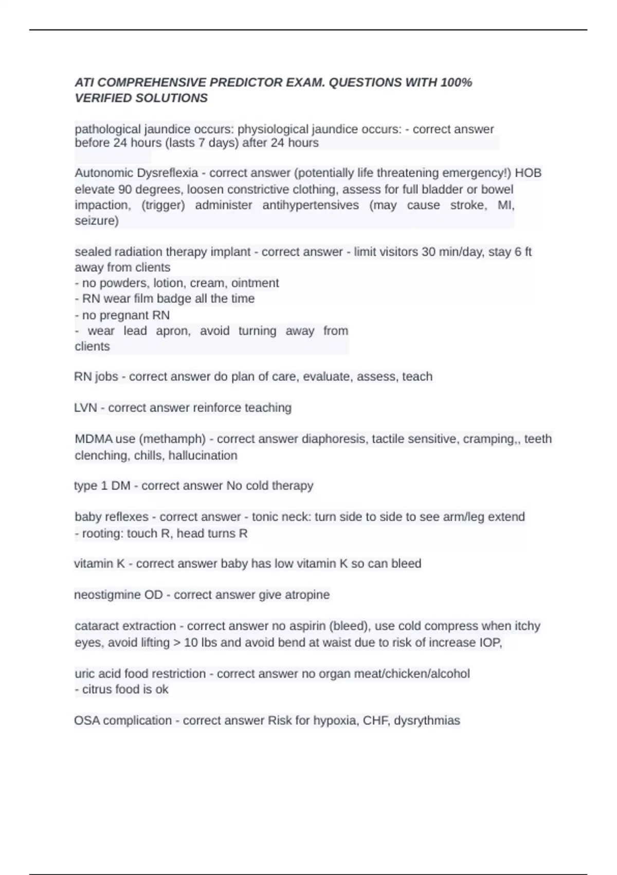 OSA complication - correct answer Risk for hypoxia, CHF, dysrythmias