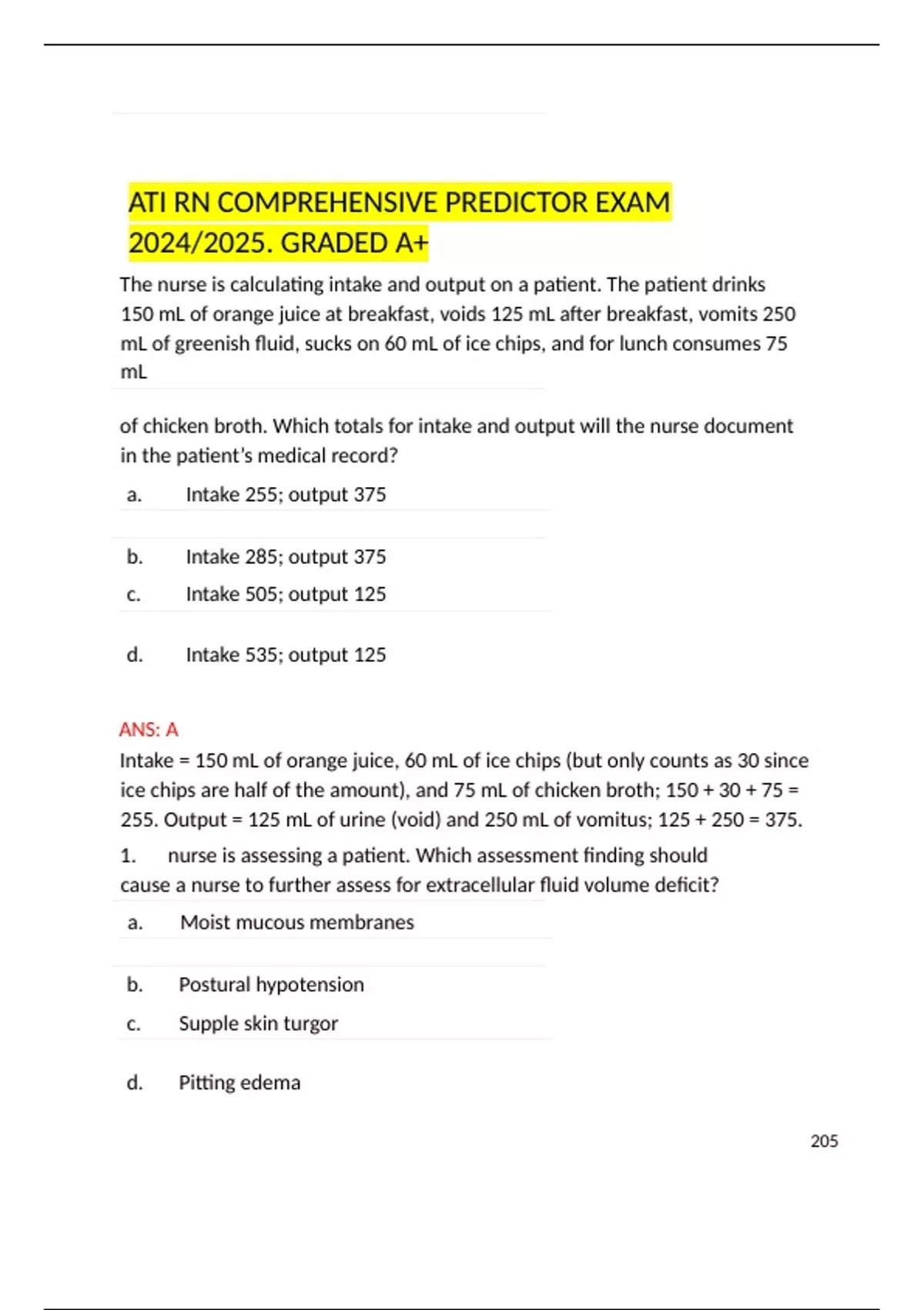 ATI RN COMPREHENSIVE PREDICTOR EXAM 2024/2025. GRADED A+