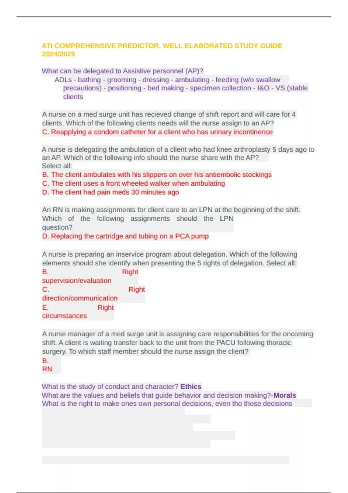 ATI COMPREHENSIVE PREDICTOR. WELL ELABORATED STUDY GUIDE