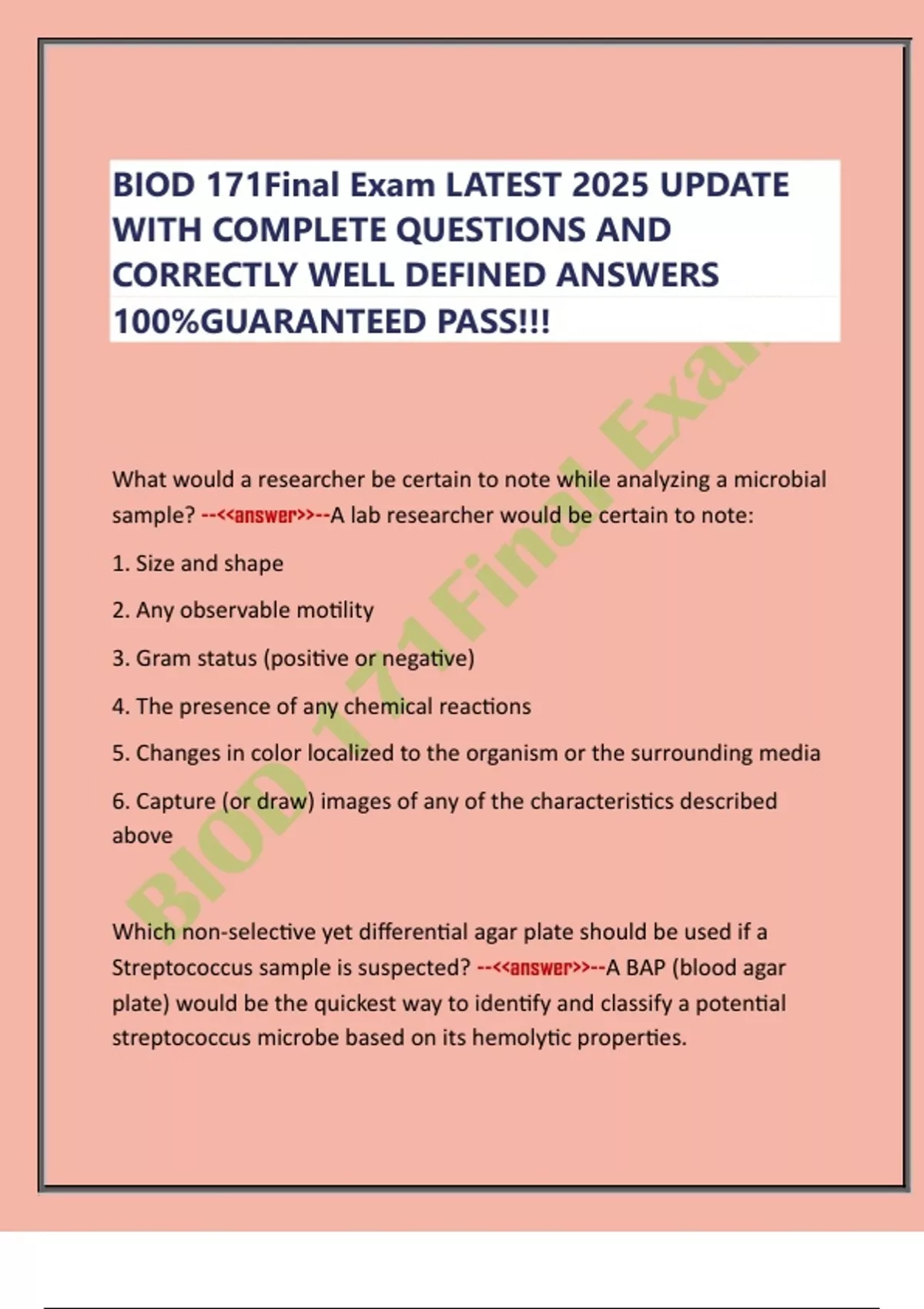 BIOD 171Final Exam LATEST 2025 UPDATE WITH COMPLETE QUESTIONS AND CORRECTLY WELL DEFINED ANSWERS 100%GUARANTEED PASS!!! Wh