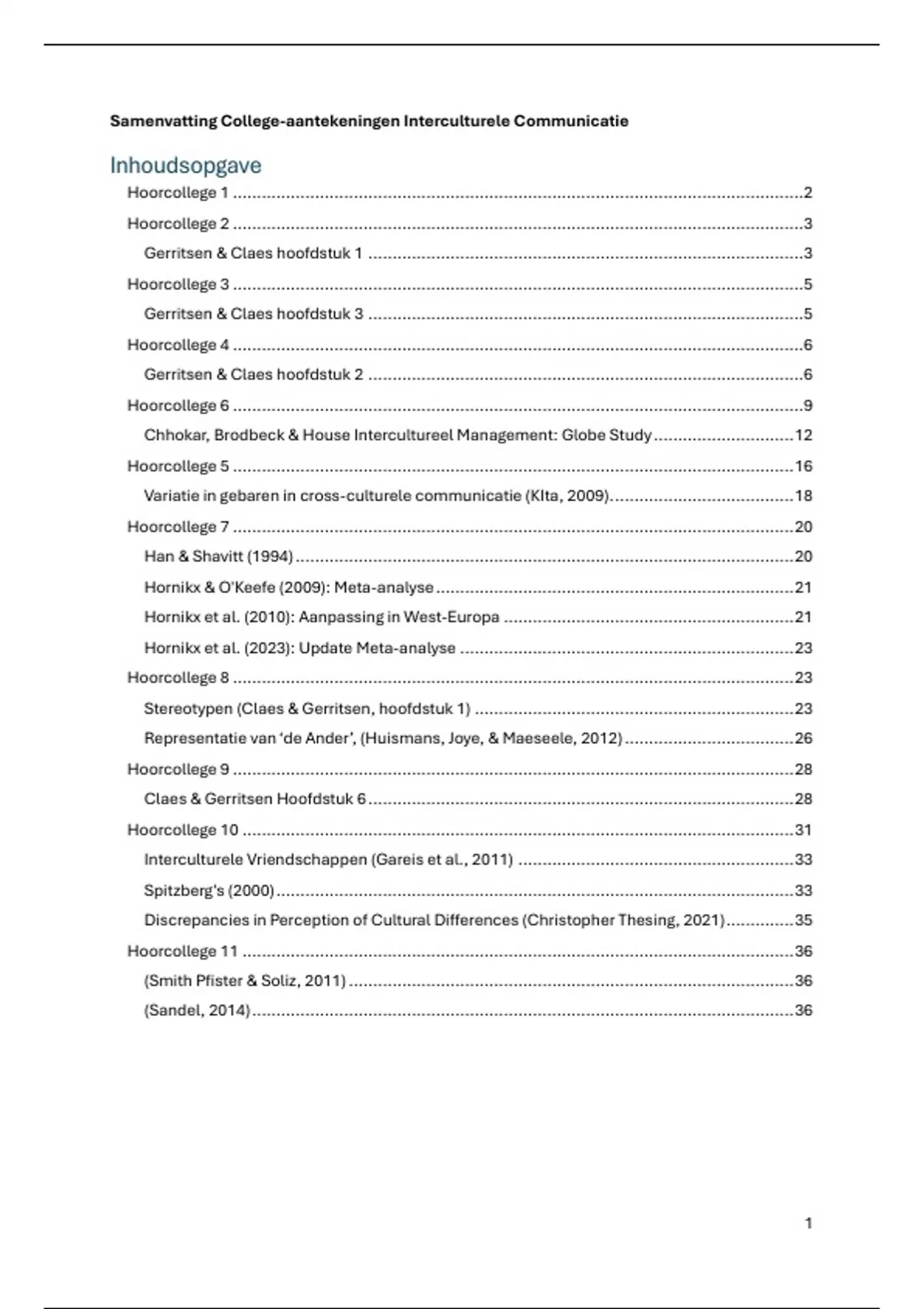 Samenvatting College-aantekeningen Interculturele Communicatie