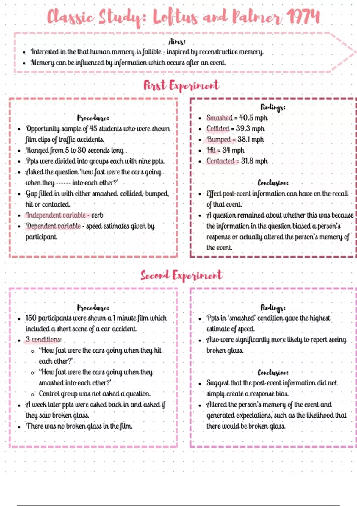Summary Classic Study Loftus and Palmer 1974