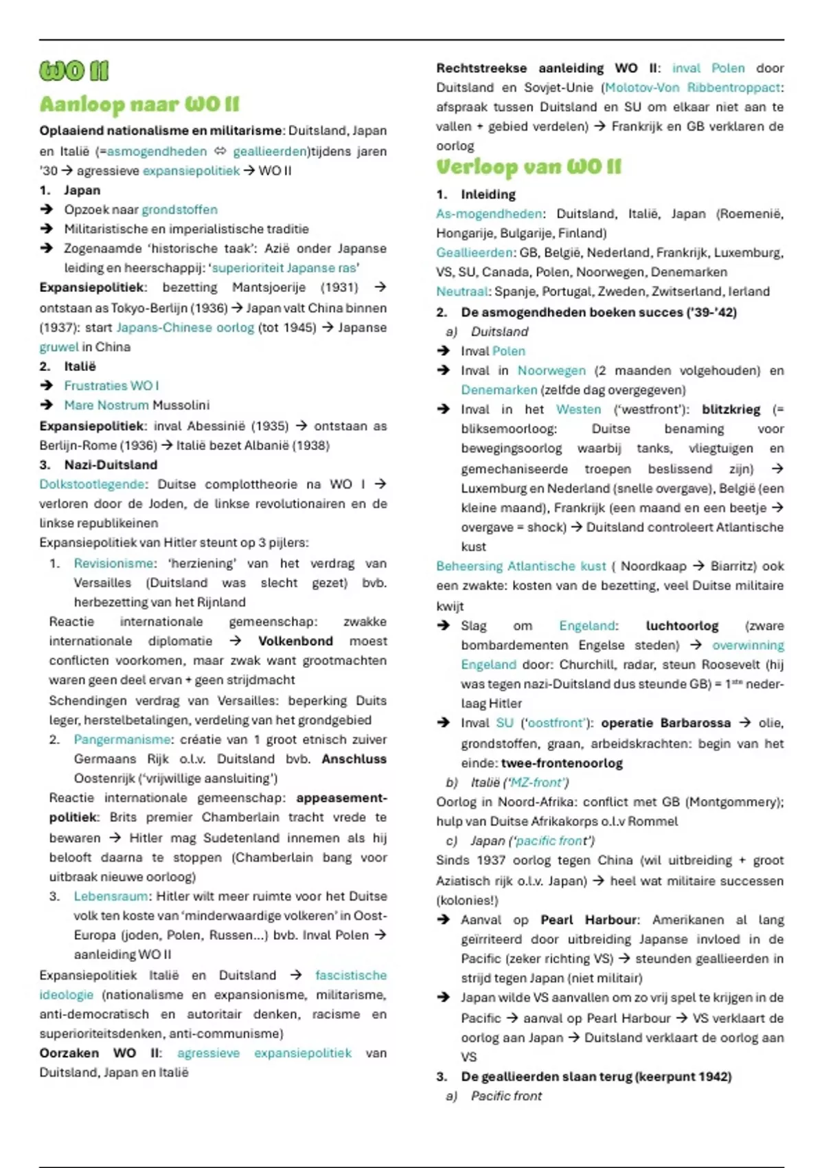 Oplaaiend nationalisme en militarisme: Duitsland, Japan vallen + gebied verdelen) → Frankrijk en GB verklaren de