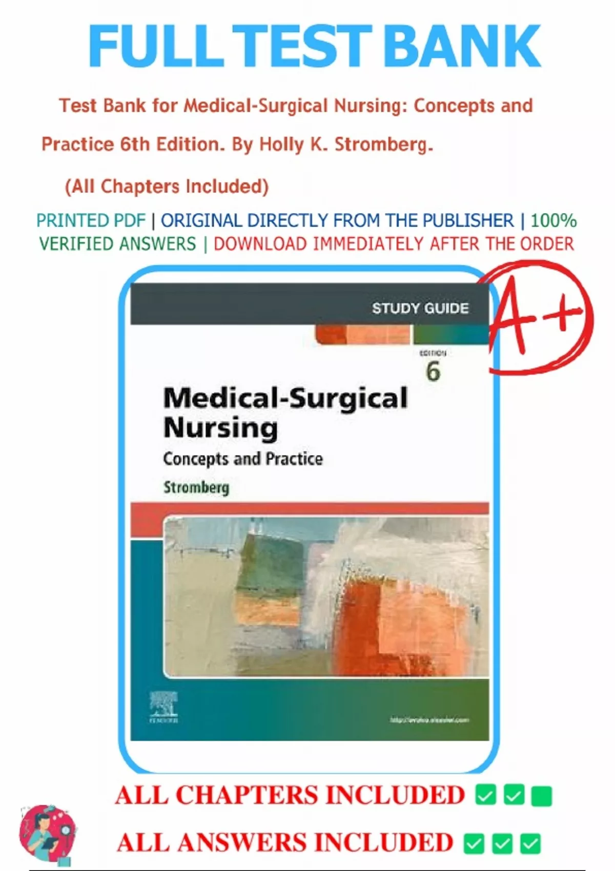 Test Bank for Medical-Surgical Nursing: Concepts and Practice 6th Edition. By Holly K. Stromberg.||All chapters 1-49 included.
