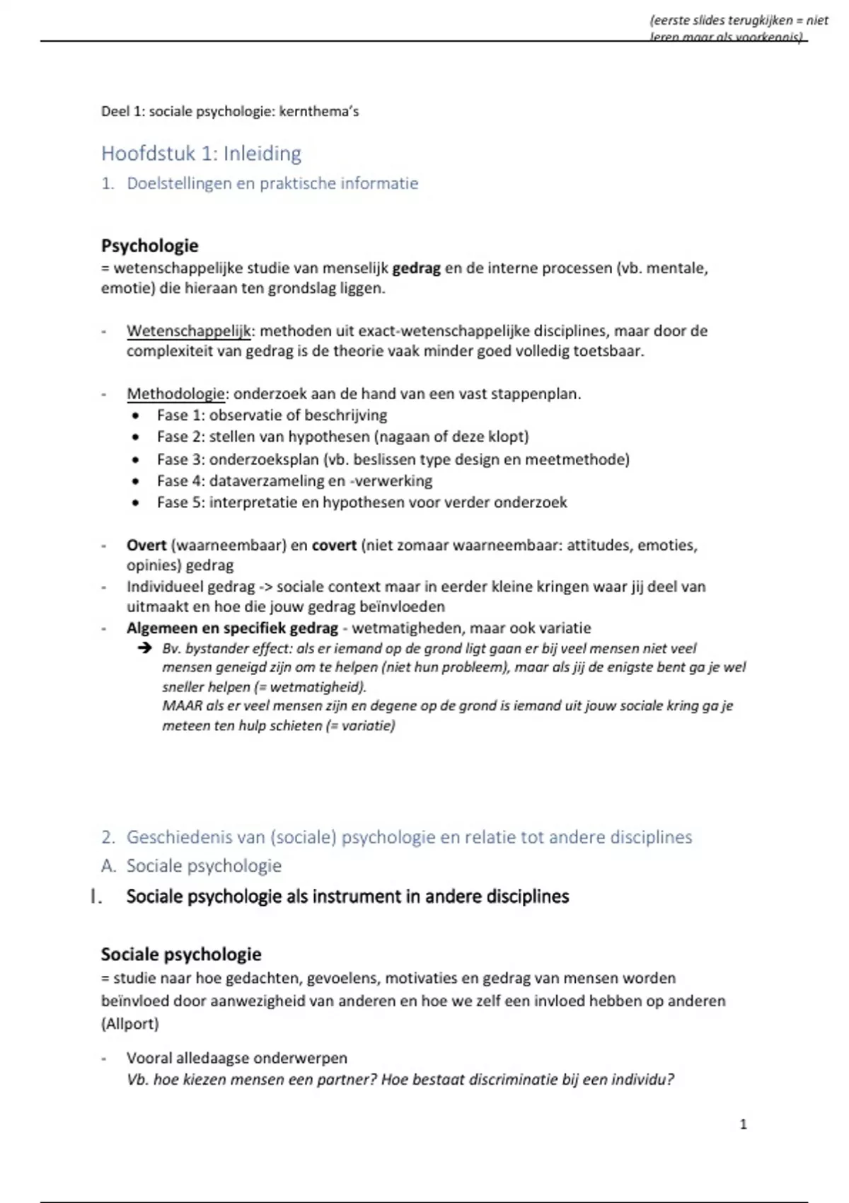 2. Geschiedenis van (sociale) psychologie en relatie tot andere disciplines