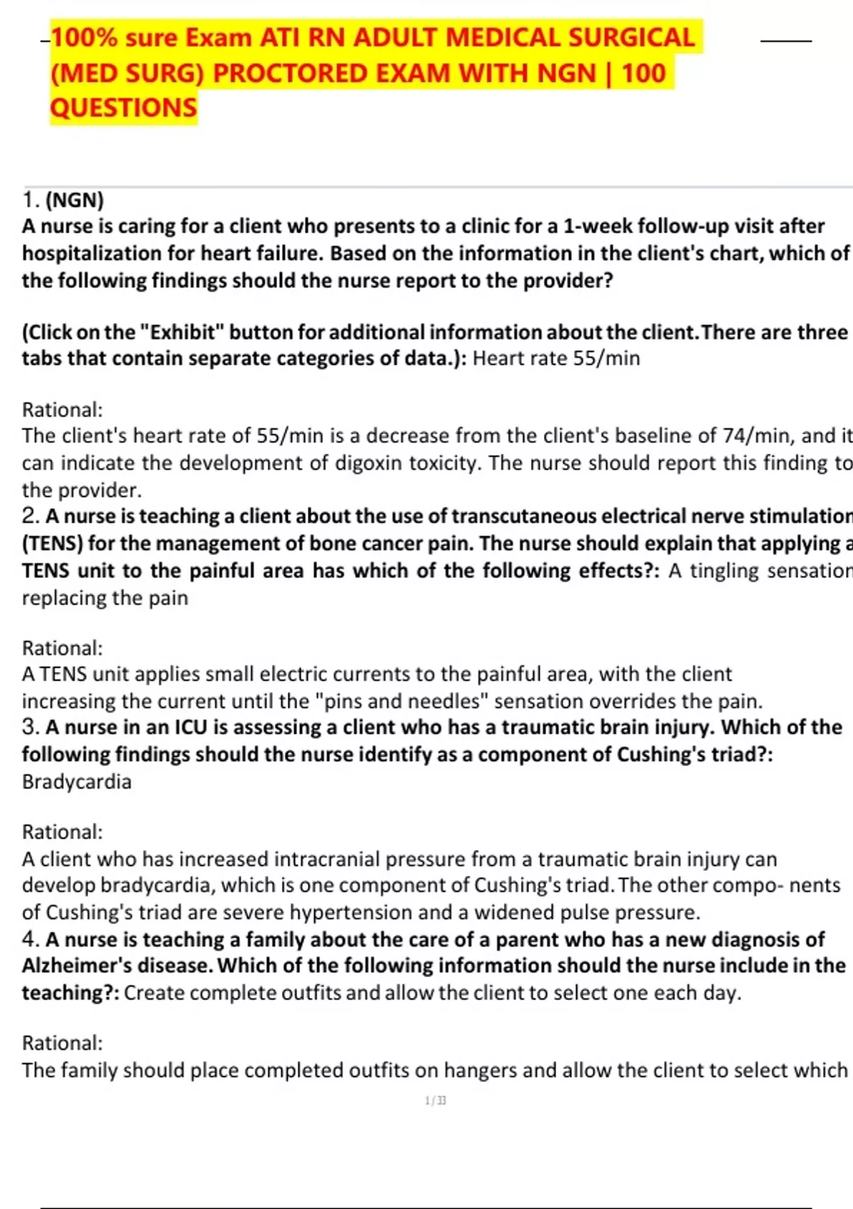 , 100% sure Exam ATI RN ADULT MEDICAL SURGICAL